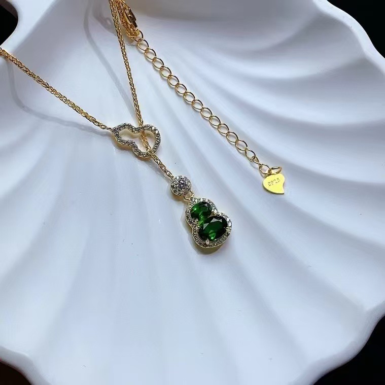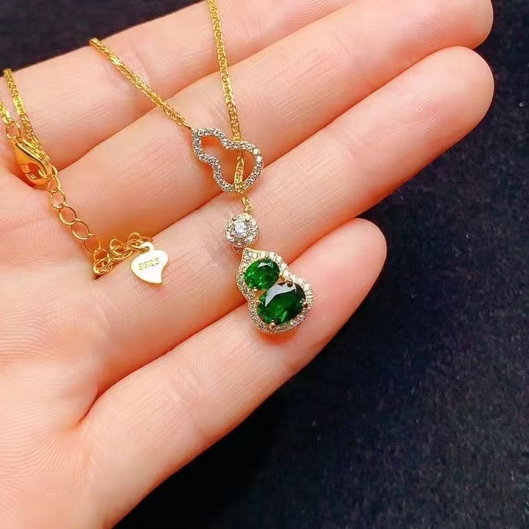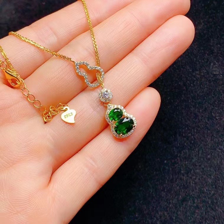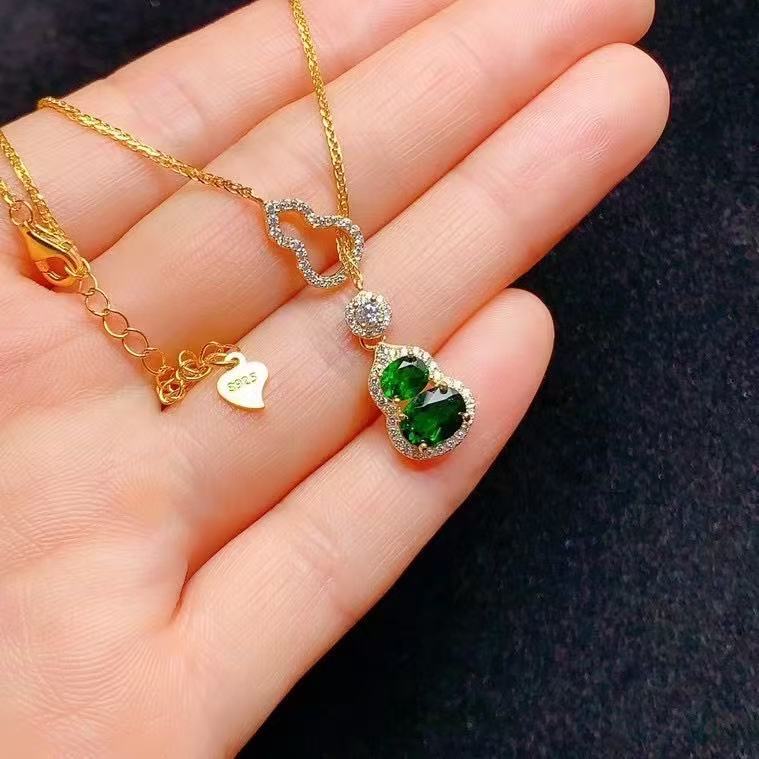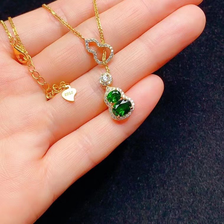 S925 Серебряный инкрустированный натуральный транспироксен рукав новый китайский стиль подвеска с тыквой высокого уровня главный камень размер 4 × 5,5 × 7