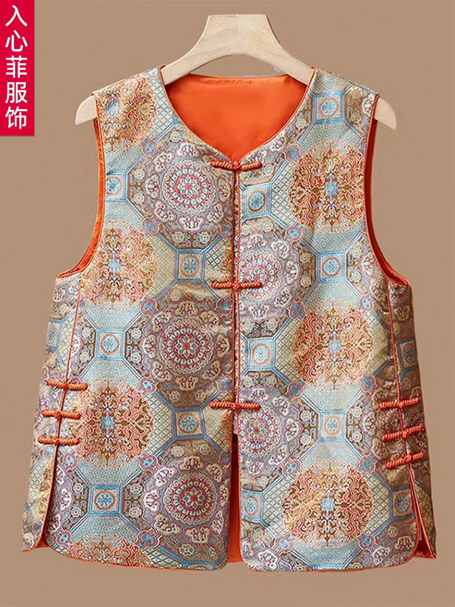 Новая женская жакетка-жилет в китайском стиле для женщин среднего возраста, весенняя новинка, легкий национальный стиль, ретро-жаккардовый топ