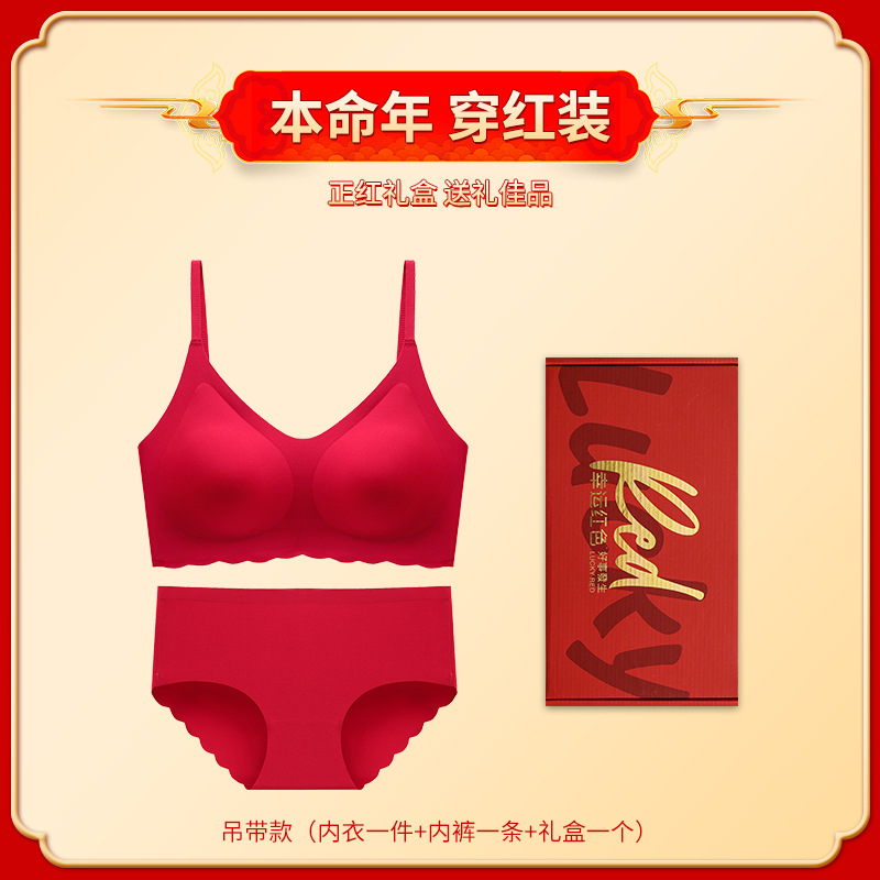 Неннатальный год Красный нижнее белье, комплект трусики, женский без следов, маленькая грудь, чтобы собрать свадебную невесту, 2025 год, бюстгальтер