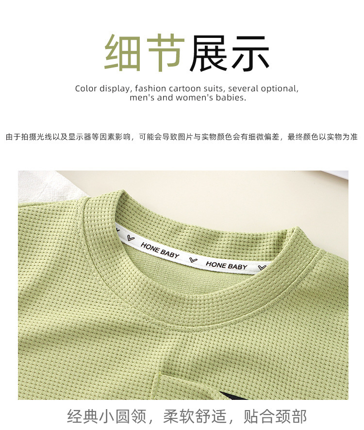 Новый детский вафли с короткими рукавами, летняя мужская и женская повседневная спортивная одежда свежий тонкий набор из двух частей