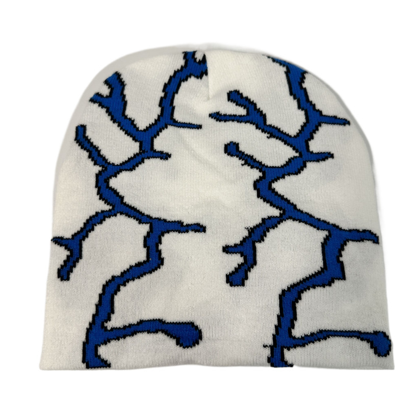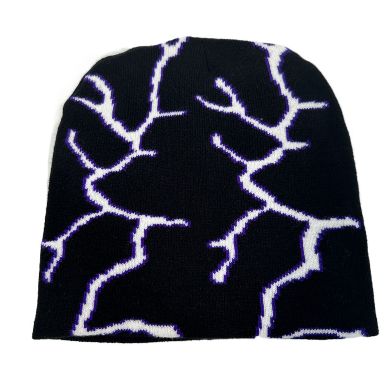 Осенняя и зимняя новая черно-белая молния прохладный ветер вязаная шапка европейская и американская темная шерстяная шапка трансграничная мужская и женская лыжная холодная шапка