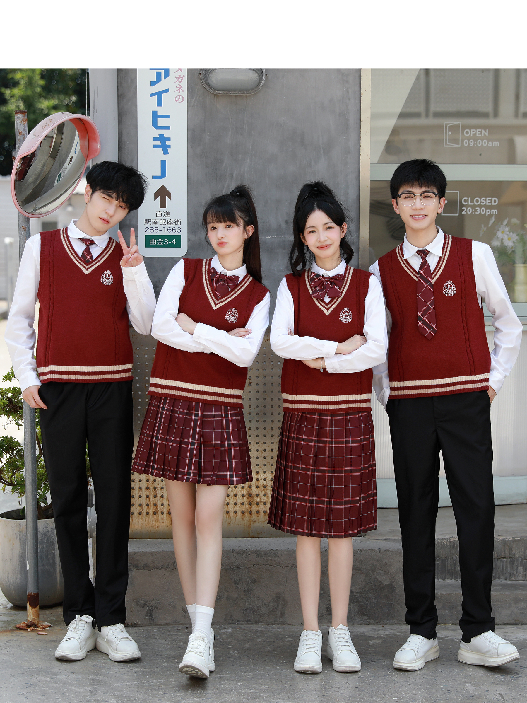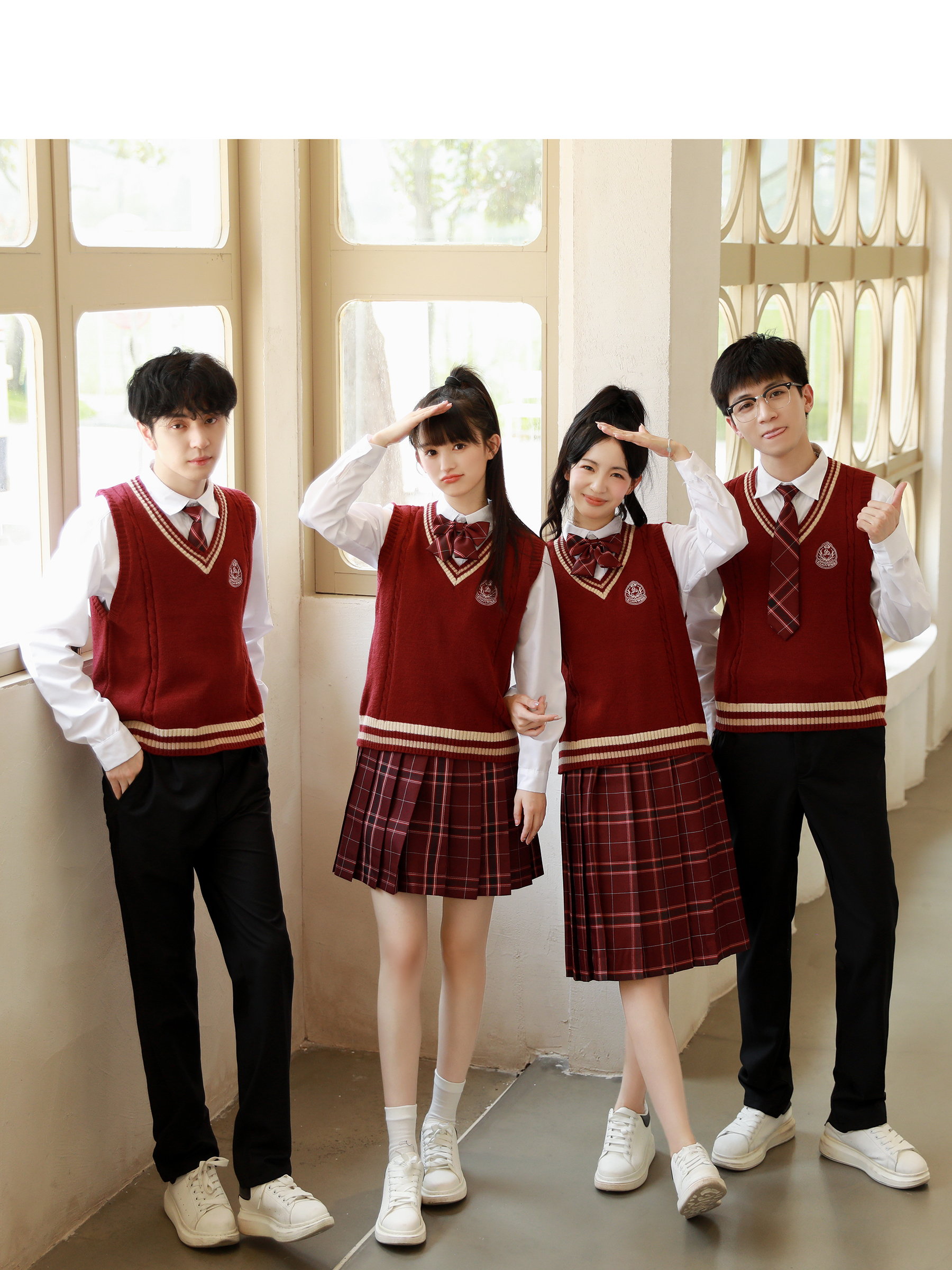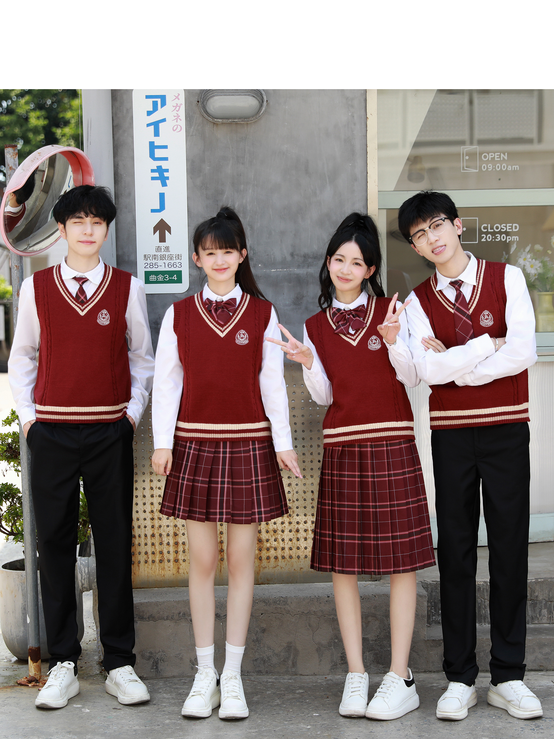 Групповая покупка специального выстрела 8; Мужские белые длинные рукава + черные брюки + значок дома + галстук Шахуа; Женский белый длинный рукав + черная юбка + амарантовый галстук-бабочка + красный свитер; Женские белые длинные рукава + юбка Шахуа + значок дома + галстук-бабочка Шахуа; Красный жилет + мужские белые длинные рукава + галстук Шахуа; Групповая покупка специального выстрела 9; Женские белые длинные рукава + юбка-миди Шахуа + галстук-бабочка Шахуа + красный жилет; Мужские белые длинные рукава + черные брюки + значок дома + галстук Шахуа + белый жилет; Мужские белые длинные рукава + черные брюки + галстук Шахуа + красный жилет; Красный жилет + женские белые длинные рукава + галстук-бабочка Шахуа; Женские белые длинные рукава + юбка-миди Шахуа + галстук-бабочка Шахуа + красный свитер