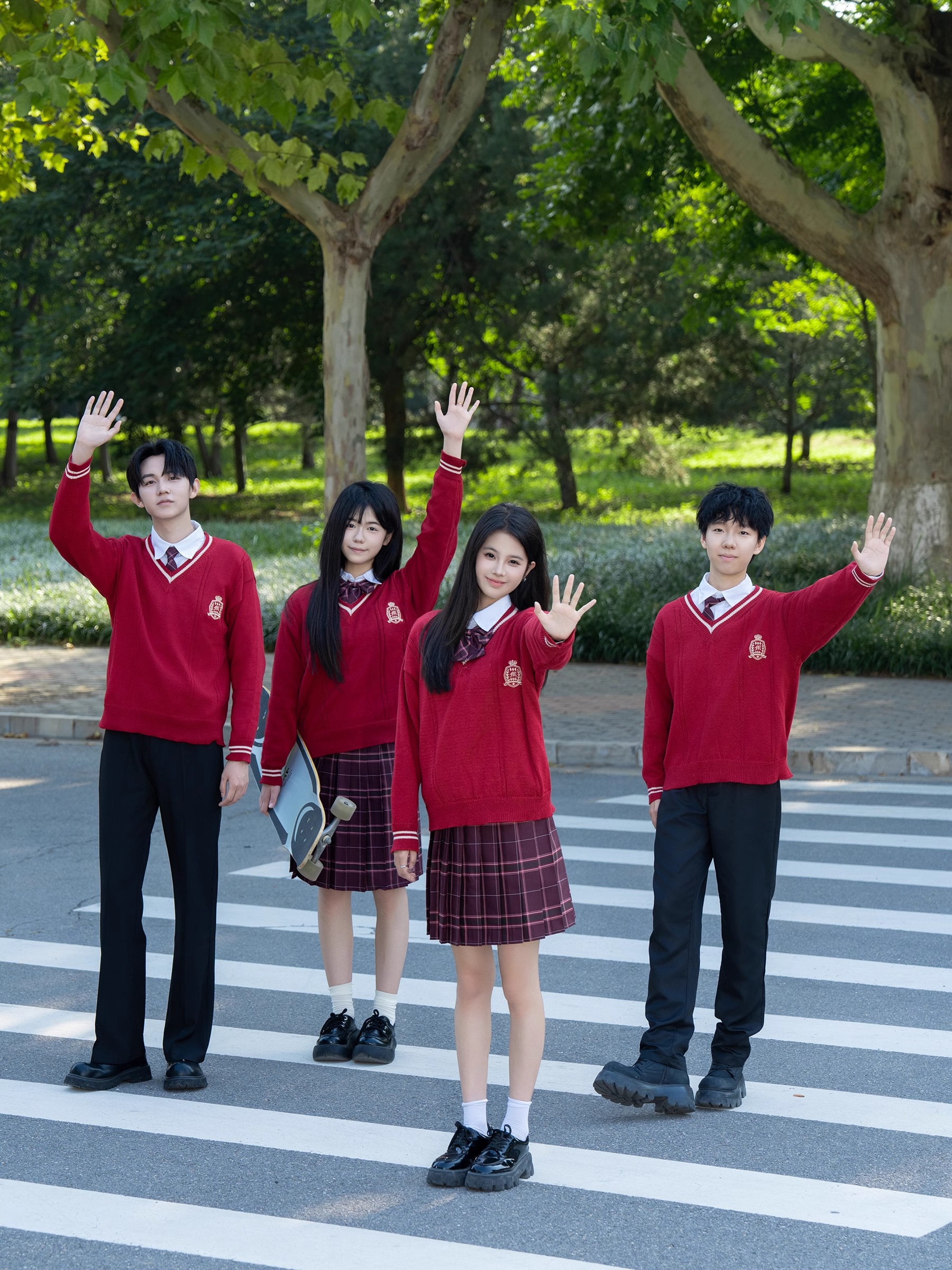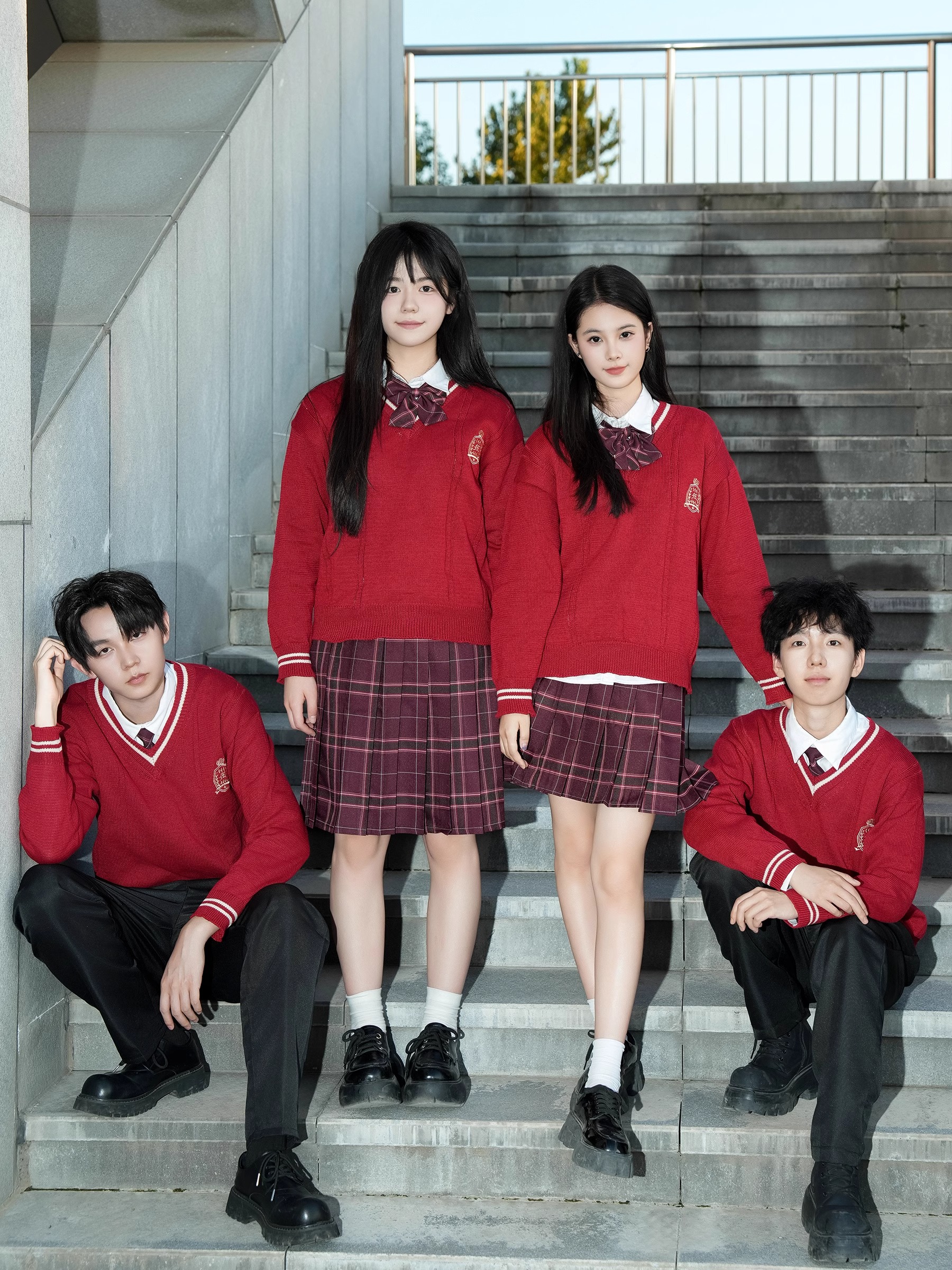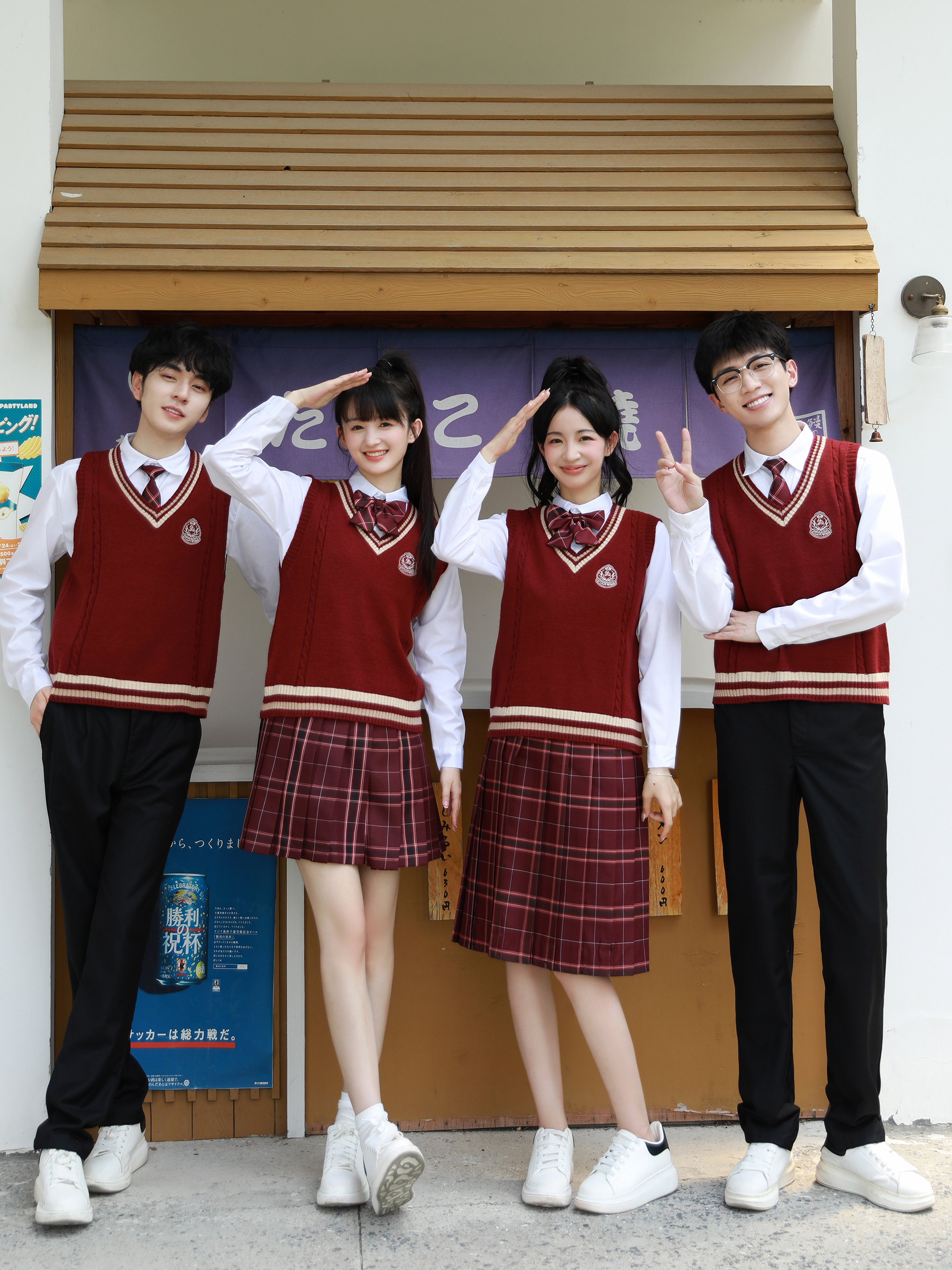 Групповая покупка специального выстрела 8; Мужские белые длинные рукава + черные брюки + значок дома + галстук Шахуа; Женский белый длинный рукав + черная юбка + амарантовый галстук-бабочка + красный свитер; Женские белые длинные рукава + юбка Шахуа + значок дома + галстук-бабочка Шахуа; Красный жилет + мужские белые длинные рукава + галстук Шахуа; Групповая покупка специального выстрела 9; Женские белые длинные рукава + юбка-миди Шахуа + галстук-бабочка Шахуа + красный жилет; Мужские белые длинные рукава + черные брюки + значок дома + галстук Шахуа + белый жилет; Мужские белые длинные рукава + черные брюки + галстук Шахуа + красный жилет; Красный жилет + женские белые длинные рукава + галстук-бабочка Шахуа; Женские белые длинные рукава + юбка-миди Шахуа + галстук-бабочка Шахуа + красный свитер