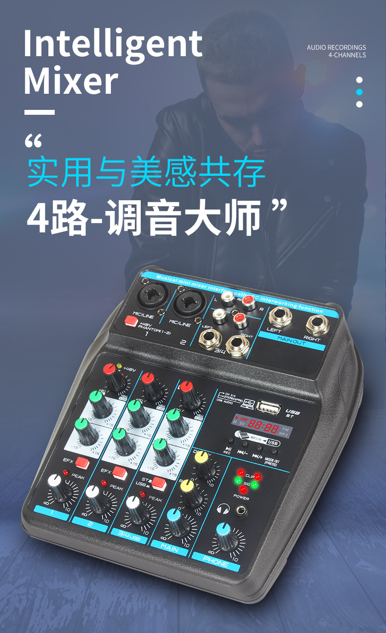 Enping новый 4-х маленький микшер Bluetooth реверберация сцены компьютер в прямом эфире USB мини-микшер Mixer