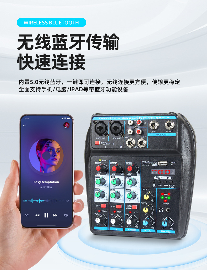 本司以“用声音连接生活”为使命,致力于为家庭娱乐、个人创作及社交场景提供高品质、易操作的麦克风便携式调音台及智能音响系统,赋能大众轻松享受声音之美。公司核心产品:涵盖家用麦克风(电容麦克风、无线麦克风以及有线麦克风)、多场景便携调音台(小型调音台、专业调音台)及家用音箱(户外活动、大型聚会),广泛应用于家庭K歌直播互动、户外聚会及多媒体娱乐场景。产品以人性化设计、稳定性能与亲民价格为核心竞争力人性化设计稳定性能与亲民价格力。