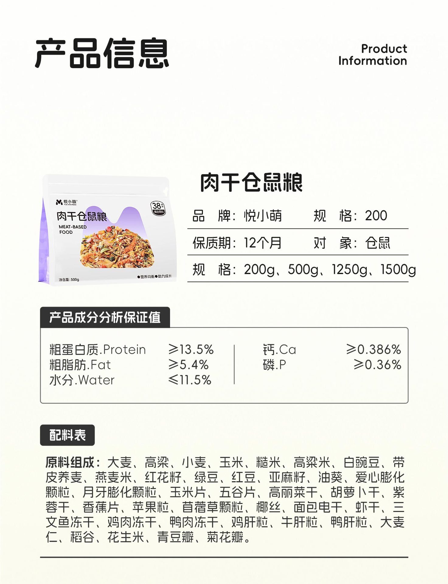 Сушеное мясо | Комплексное зерно 1.5kg [Большое количество, хватит на полгода]; Сушеное мясо | Комплексное зерно 0.5kg [38 видов зерна]; Сушеное мясо | Комплексное зерновое консервы 1250мл; Фрукты и овощи | Пищевая ценность 1.5kg [Большое количество может храниться полгода]; Фрукты и овощи | Пищевые зерна 0.5kg [32 вида зерен]; Фрукты и овощи丨Пищевая пищевая консервированная продукция 1250 мл; Зерно丨Базовое зерно 1.5kg [Большое количество может хватить на полгода]; Зерна丨Базовые зерна 0.5kg [18 видов комбинаций зерен]; Зерновые丨Базовые зерновые консервы 1250 мл; Специальный пробиотический корм с рыбьим жиром для карандашей 40+ 0.5kg; Специальный пробиотический корм с рыбьим жиром для золотых медведей 40+ 0.5kg; Чистое мясное питание 400мл.; Чистое мясное питание 1250мл.; Пищевые хлебцы 400мл; Мучные черви 1250мл; Семена черной дыни 400мл; Семена черной дыни 1250мл; Яблочные ветки 100г; 3 кусочка кукурузы для прорезывания зубов; Сукулентные энергетические батончики; Сукулентная жадная домашняя колбаса; Сухое молоко козлят; Пищевая добавка рыбий жир; [Водонепроницаемый и многофункциональный] Бункер для зерна объемом 300 мл + чайник объемом 80 мл; Кормушка на 300 мл.; Чайник для бутылки с водой объемом 80 мл.; [Попробуйте] Сушеное мясо и цельнозерновые продукты 200 г.; [Попробуйте] Пищевая пища из фруктов и овощей, 200 г.; [Попробуйте] Пять зерен базового зерна, 200 г.