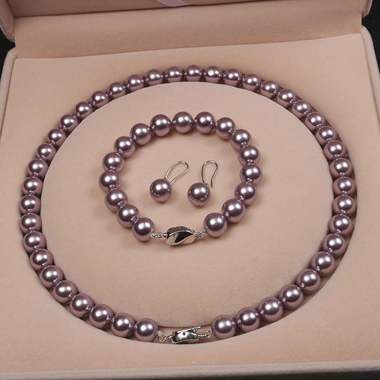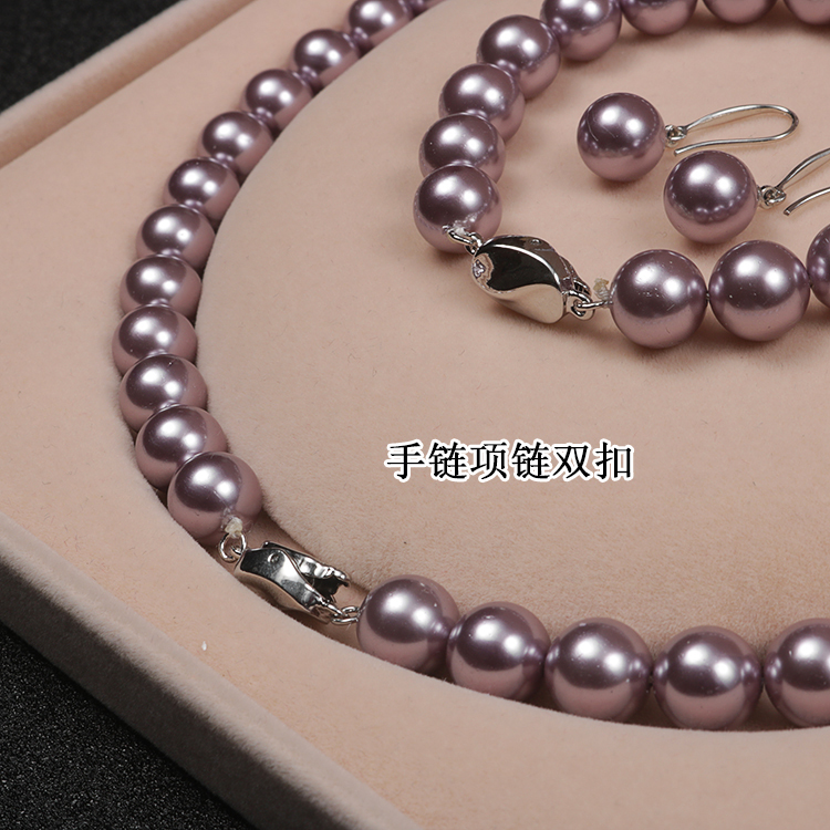 Мода сладкие 10 мм фиолетовые ракушки жемчужное ожерелье браслет серьги три комплекта бусы подарки для мамы