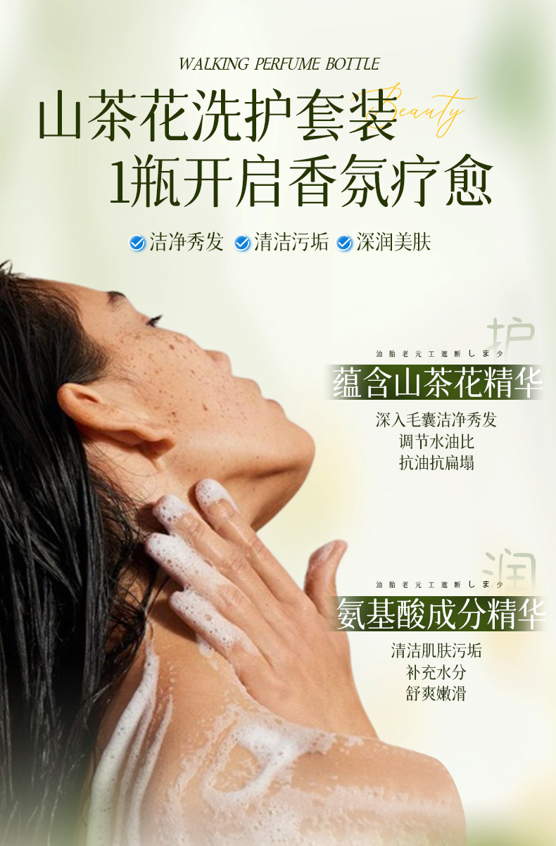 Набор гелей для душа и шампуней с камелией, против перхоти, пушистый, стойкий аромат, набор для домашнего ухода, портативный для путешествий