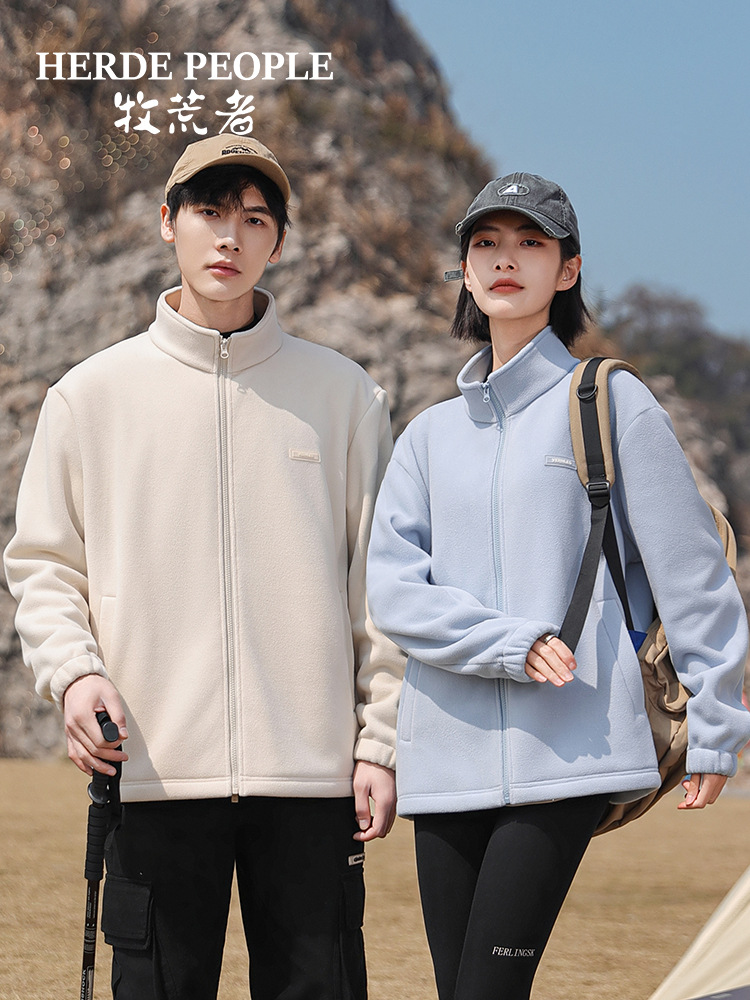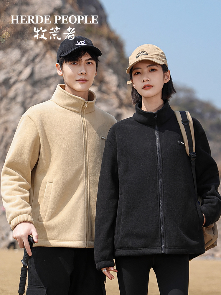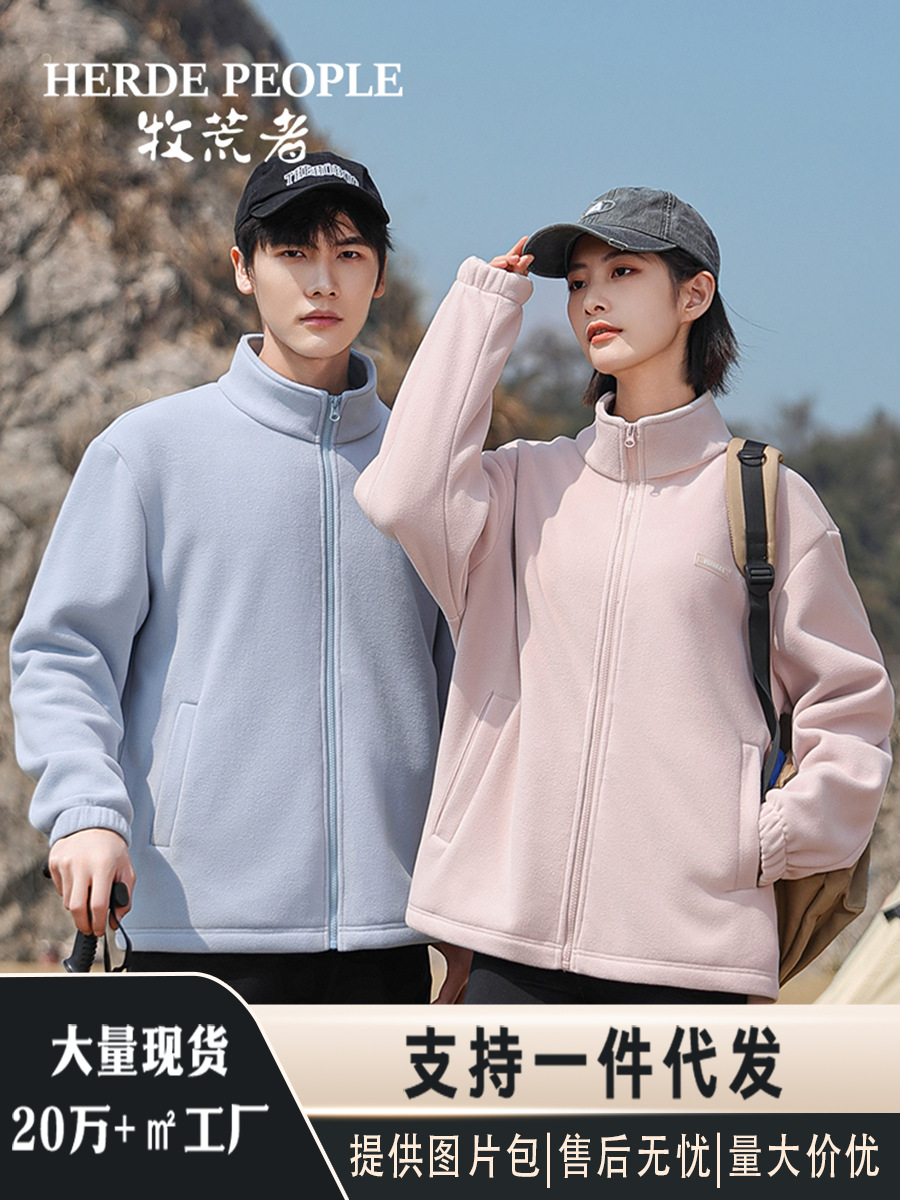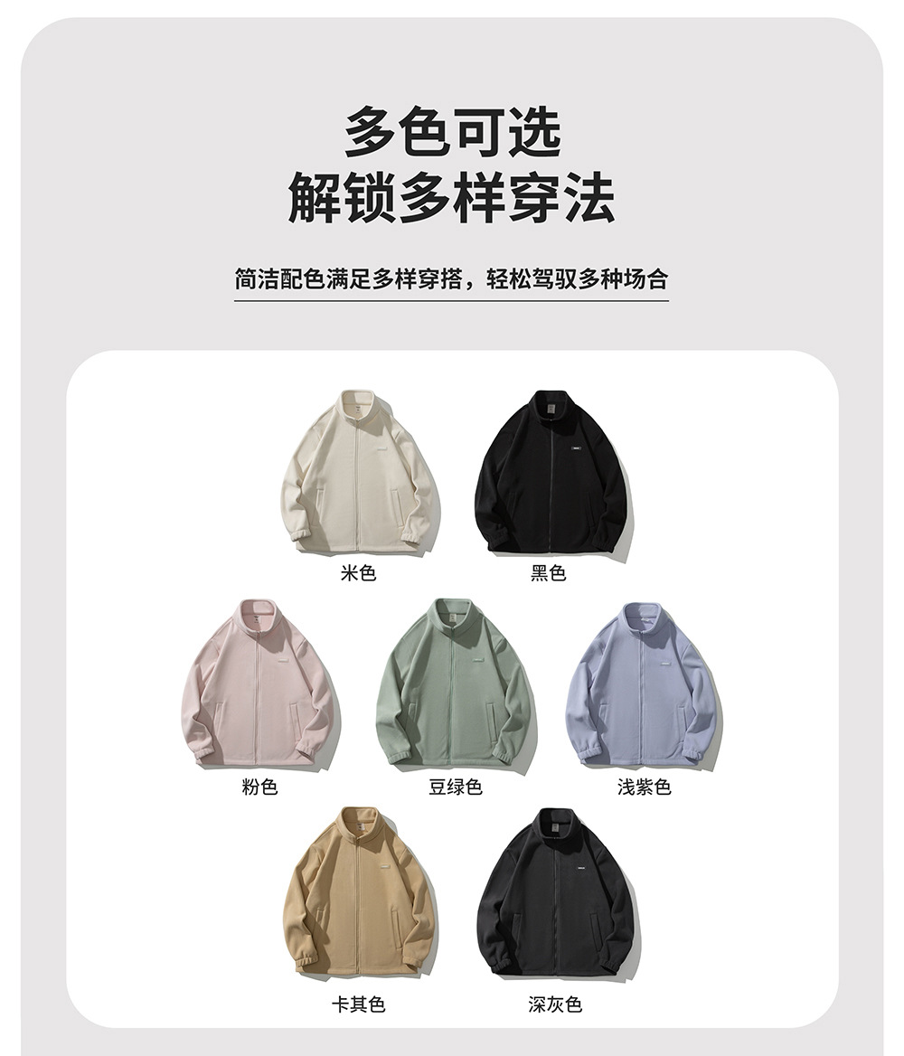 Флисовая куртка однотонного цвета на весну и осень с дополнительным флисом и утолщением для осени и зимы, подходит для многослойных образов, повседневного спорта и обеспечения тепла.