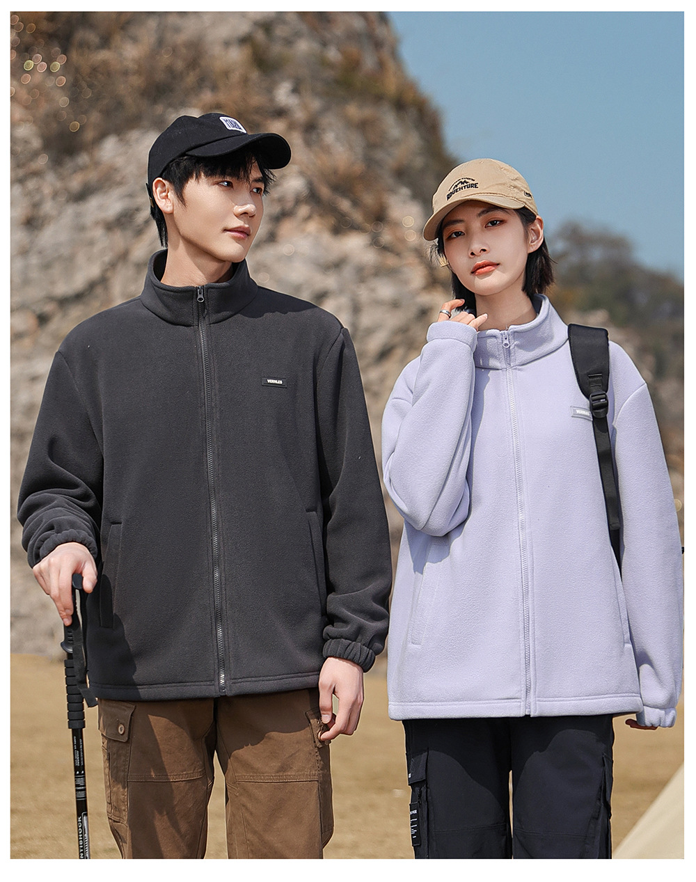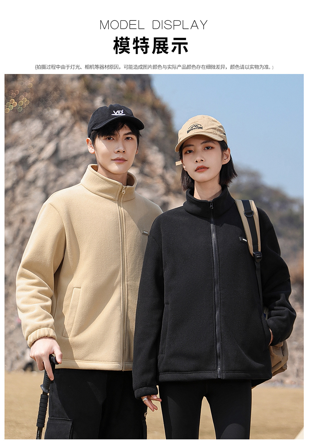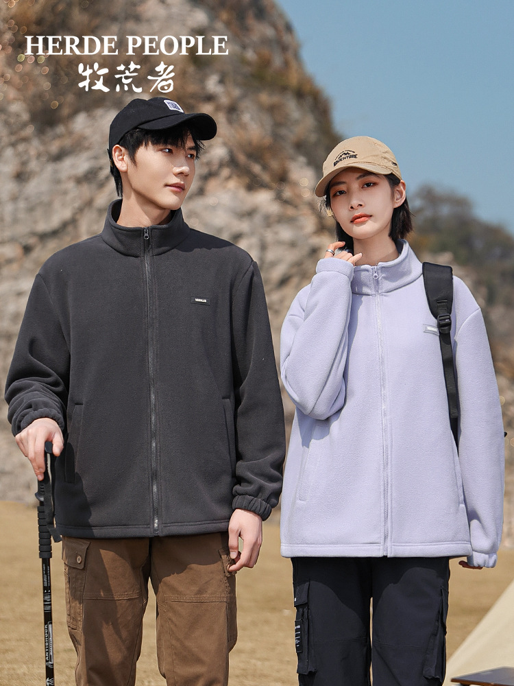 Флисовая куртка однотонного цвета на весну и осень с дополнительным флисом и утолщением для осени и зимы, подходит для многослойных образов, повседневного спорта и обеспечения тепла.