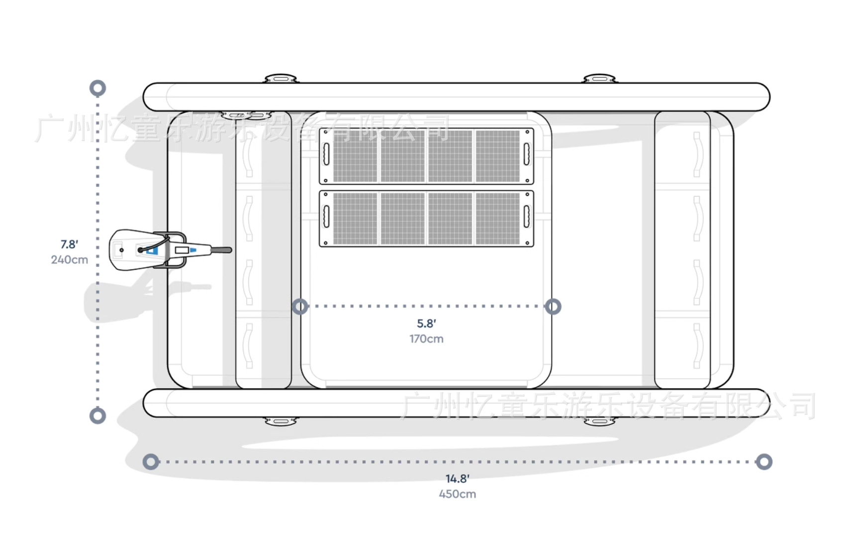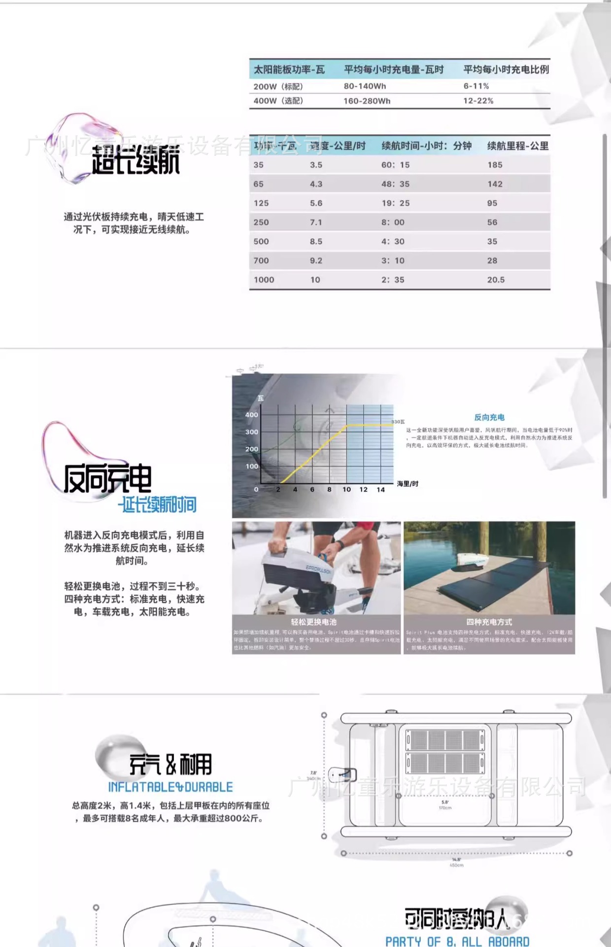 1_L размер 3 м, низкая конфигурация (вмещает 5-6 человек) без электропитания; 2_XL размер 4,5M низкая конфигурация (вмещает 7-8 человек) без питания; 3_L размер 3м средняя конфигурация (вмещает 5-6 человек)) электрическая версия; 4_XL размер 4,5M средняя конфигурация (вмещает 7-8 человек) электрическая версия; № 5_L Высота 3 м (вмещает 5-6 человек) солнечная версия; 6_XL размер 4,5 м высокая конфигурация (вмещает 7-8 человек) солнечная версия; 7_L размер 3 м флагманской модели (вмещает 5-6 человек) версия с дистанционным управлением; Флагманская модель размера 8_XL, 4,5 м (вмещает 7–8 человек), версия с дистанционным управлением; 0,1М специальный материал для воды