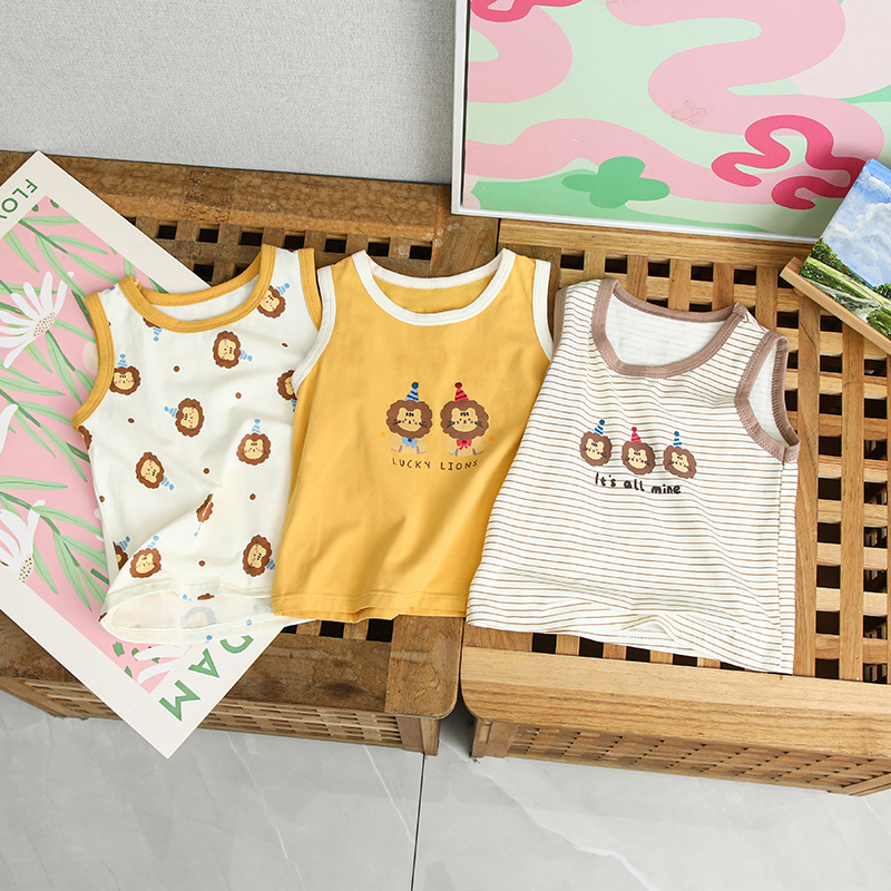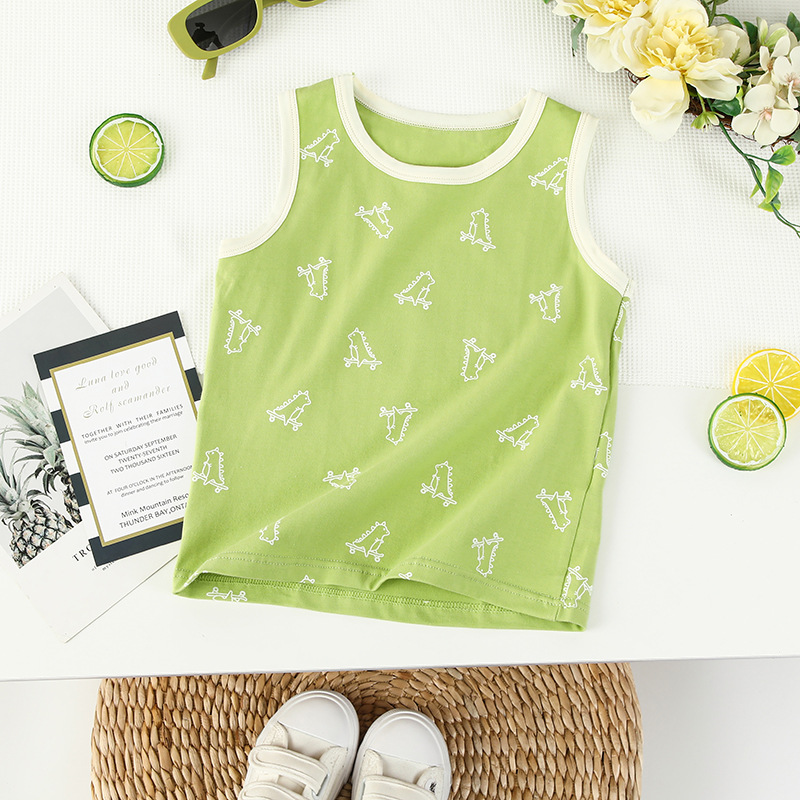 Детская одежда хлопковая лайкра жилет летняя тонкая мультяшная печать