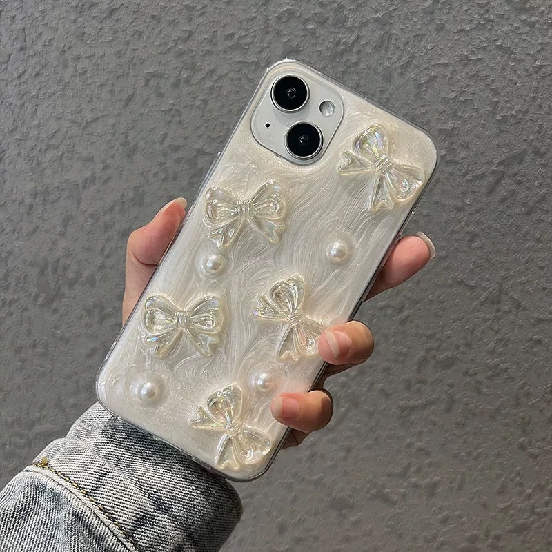 Ins перламутровый лук для iphone16promax чехол для телефона 15pro/13/12 капель клея