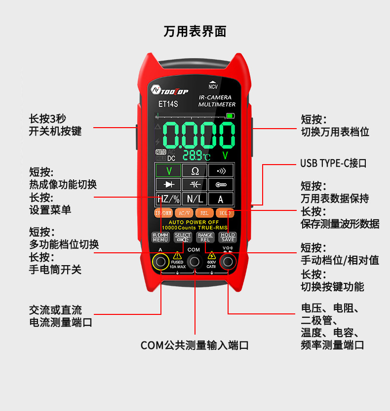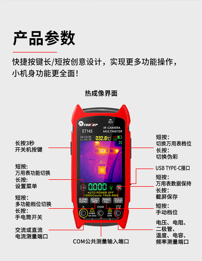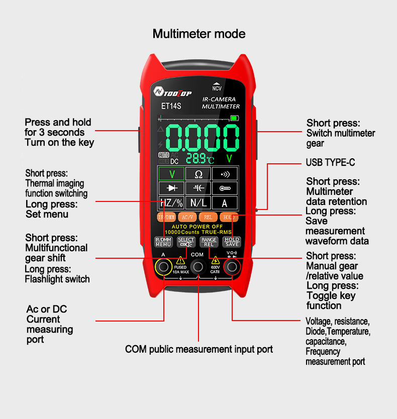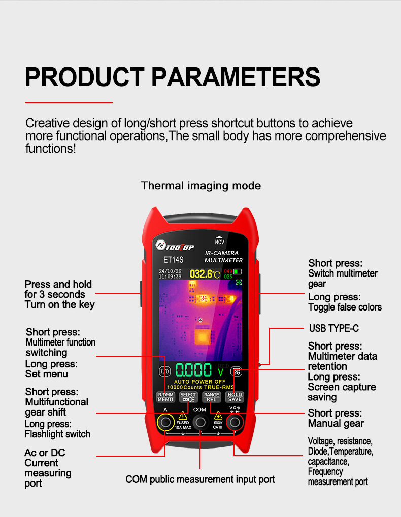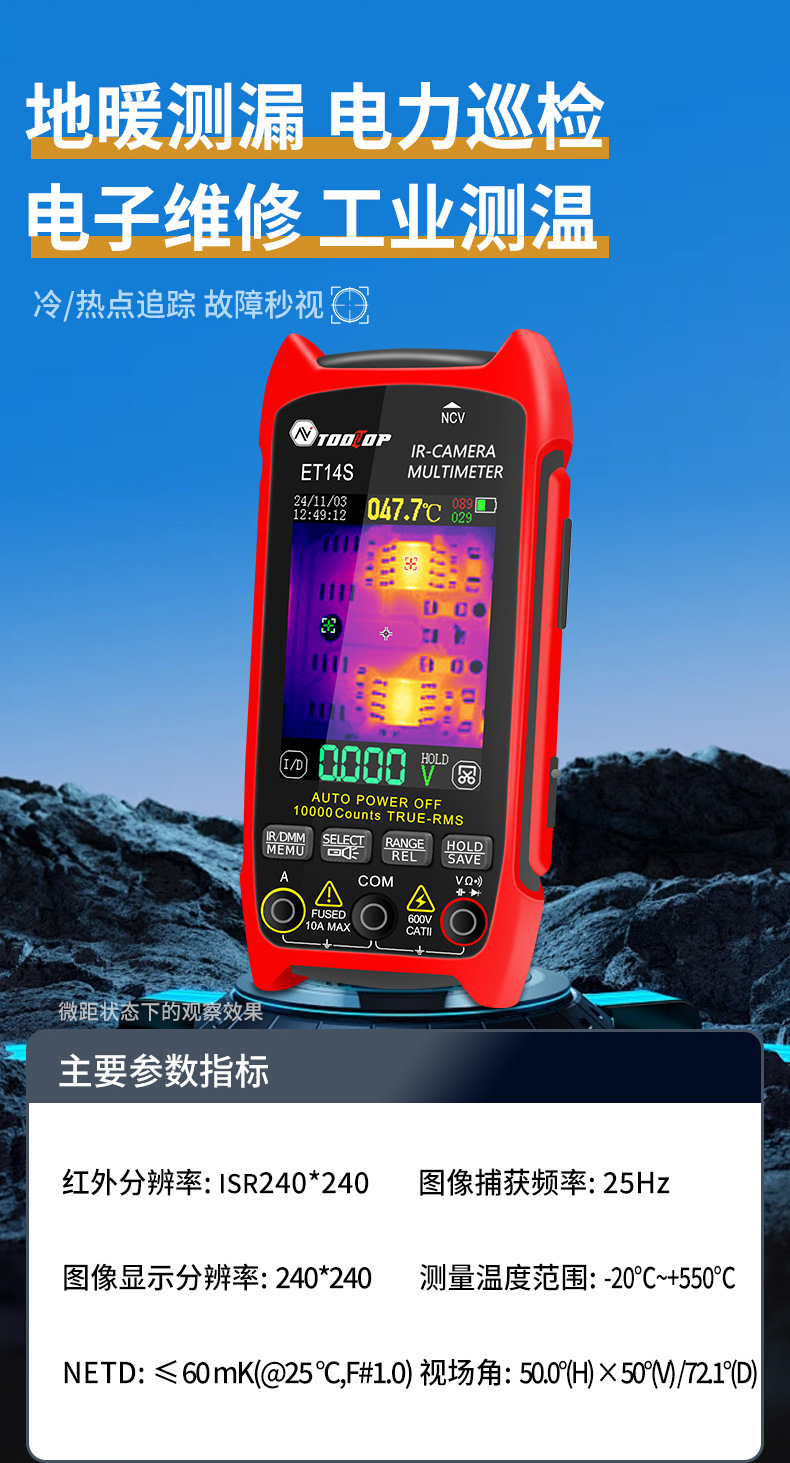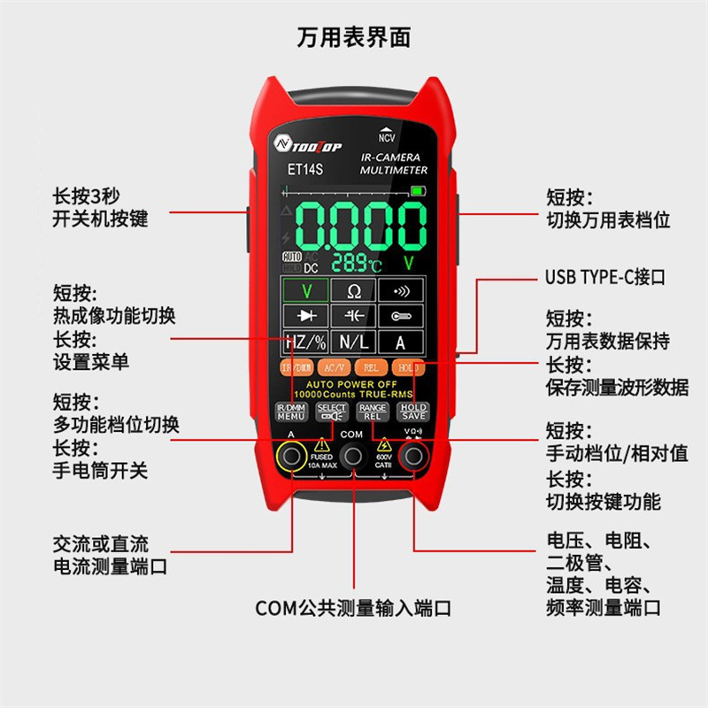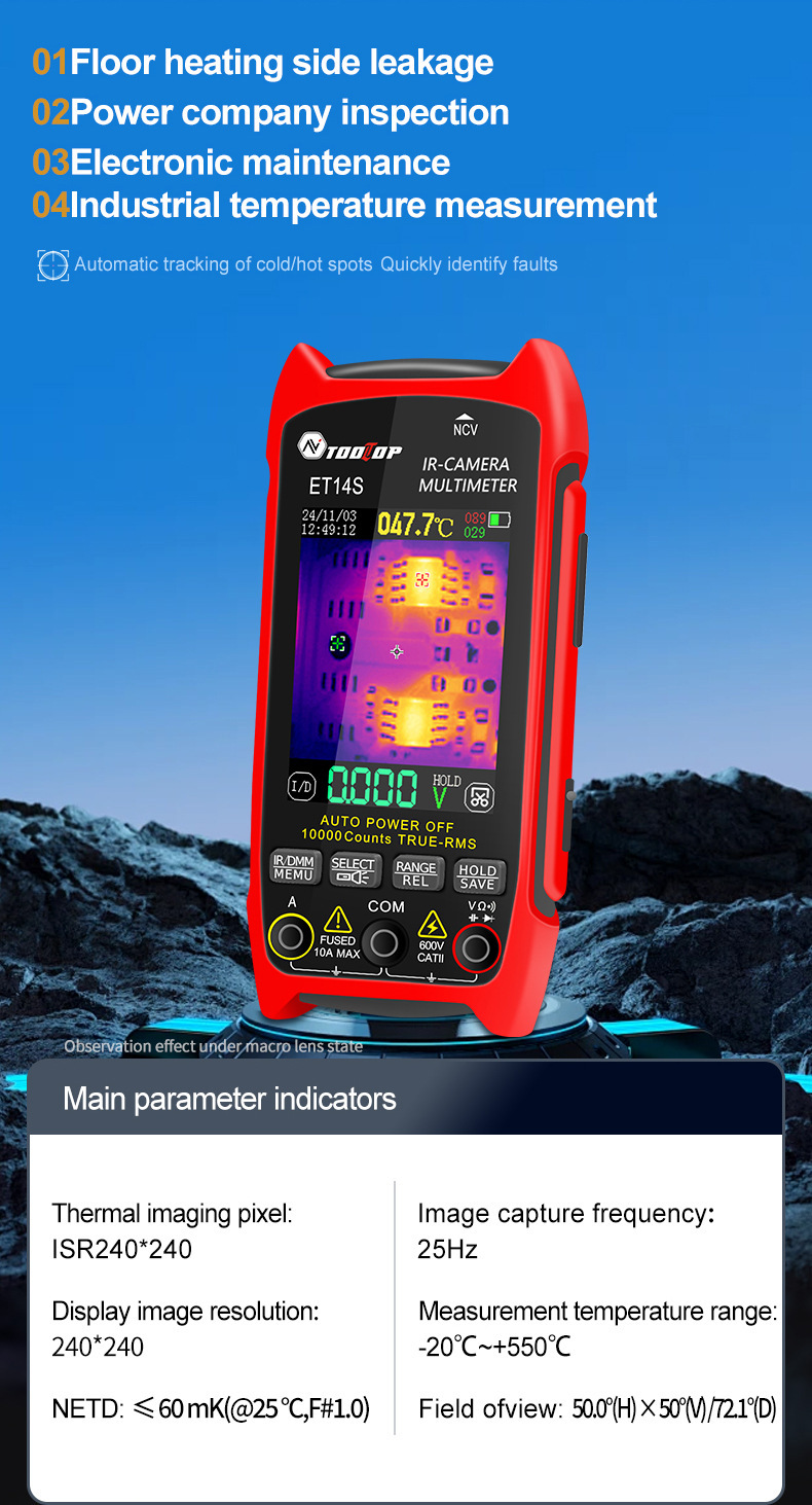 Многофункциональный 2-в-1 тепловизор/мультиметр ET14S с макрофункциональной печатной платой для экспорта внешней торговли