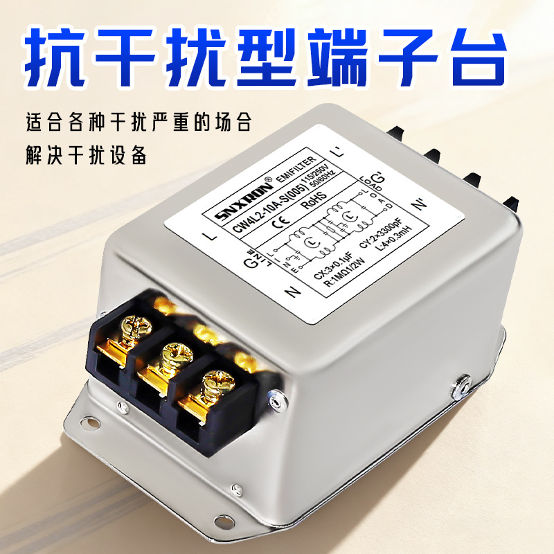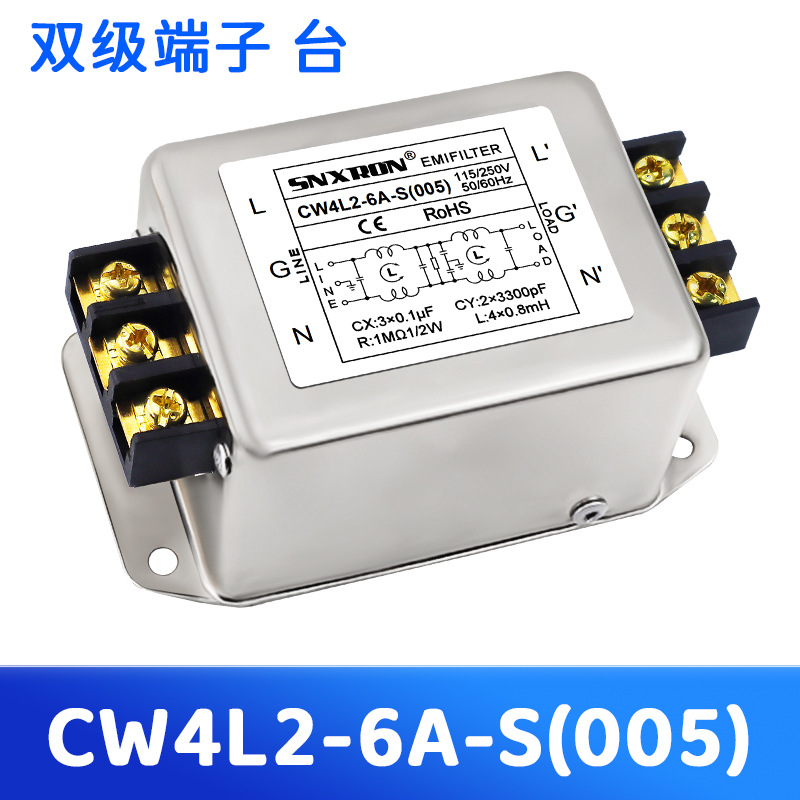 Клеммная колодка рельсового типа CW4L2-30A-S005, однофазная, переменный ток 220В, двухступенчатый фильтр 6А/10А/20А, защита от помех