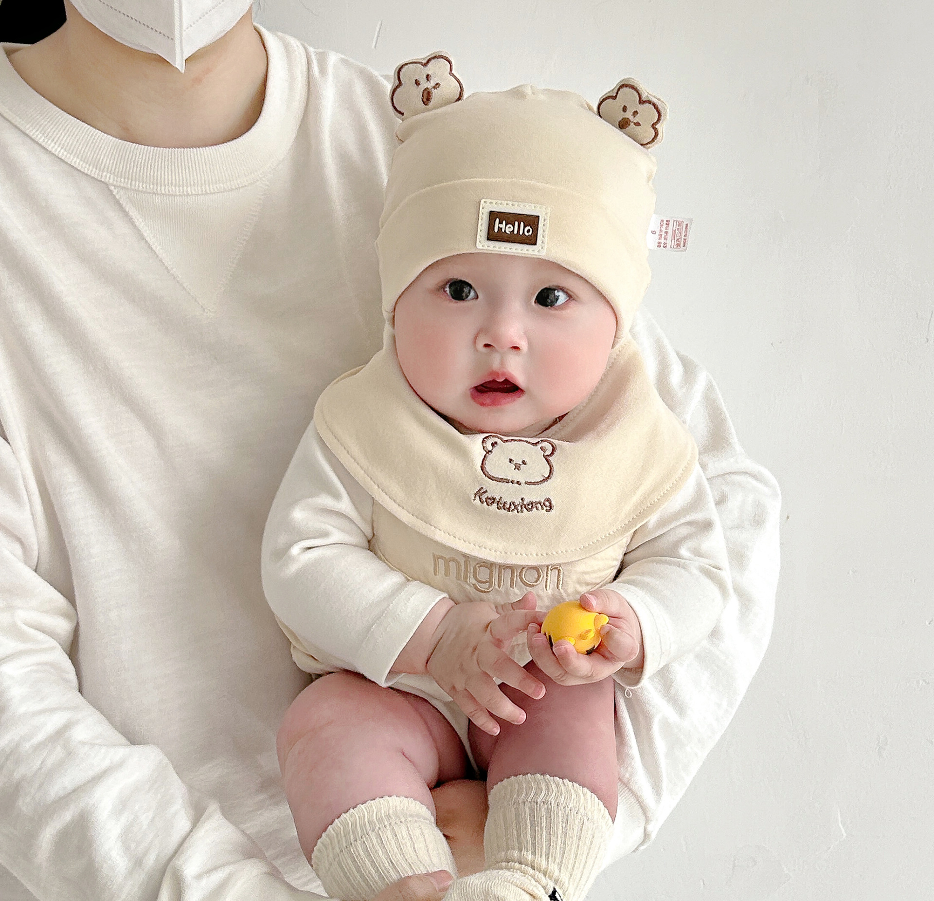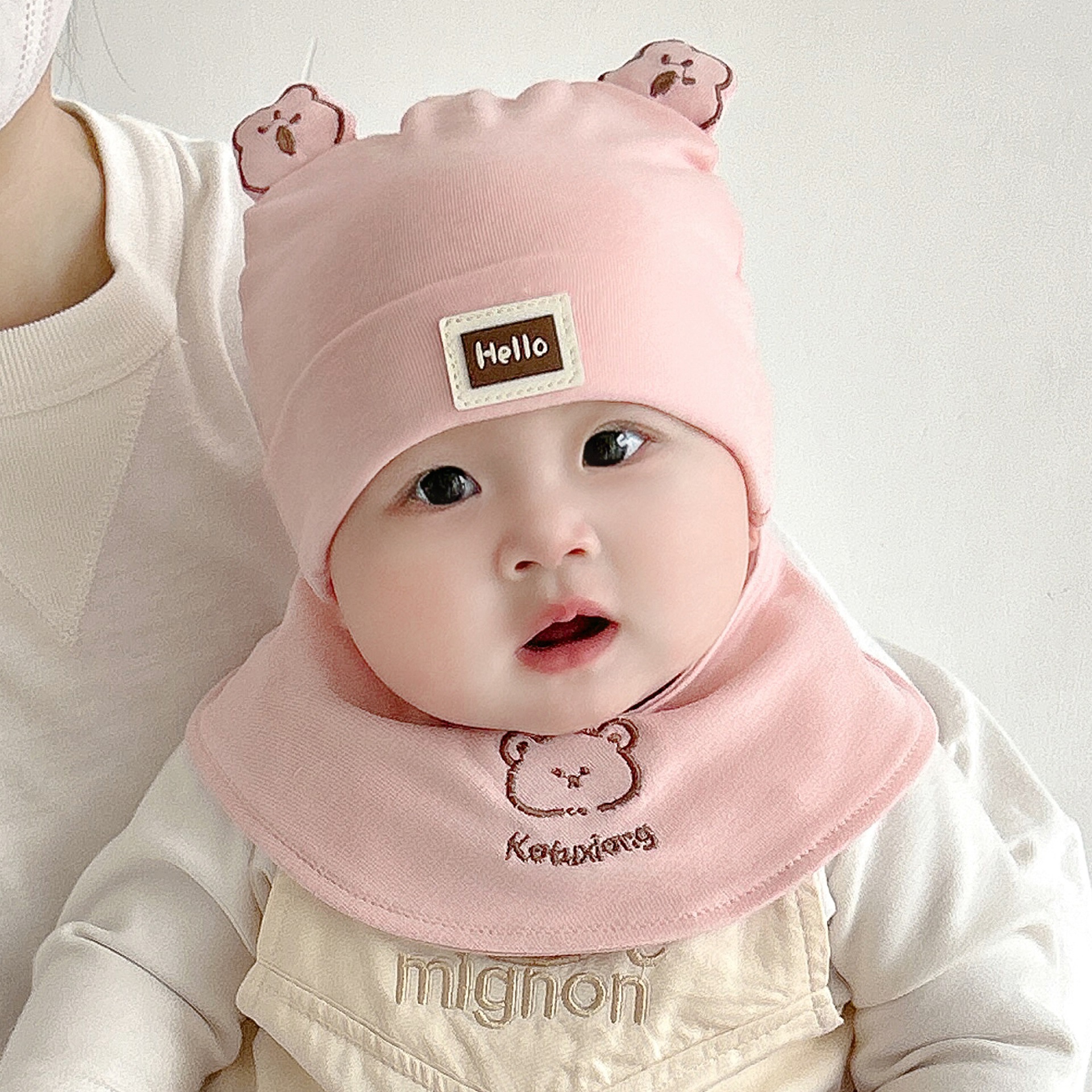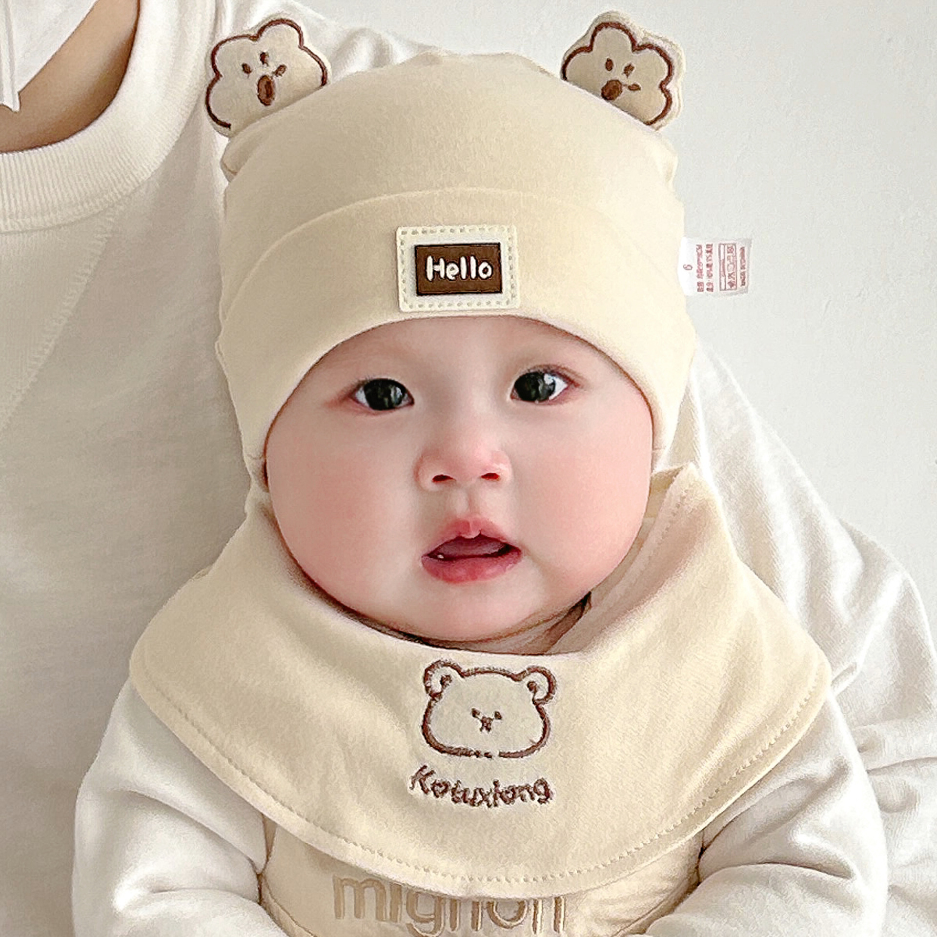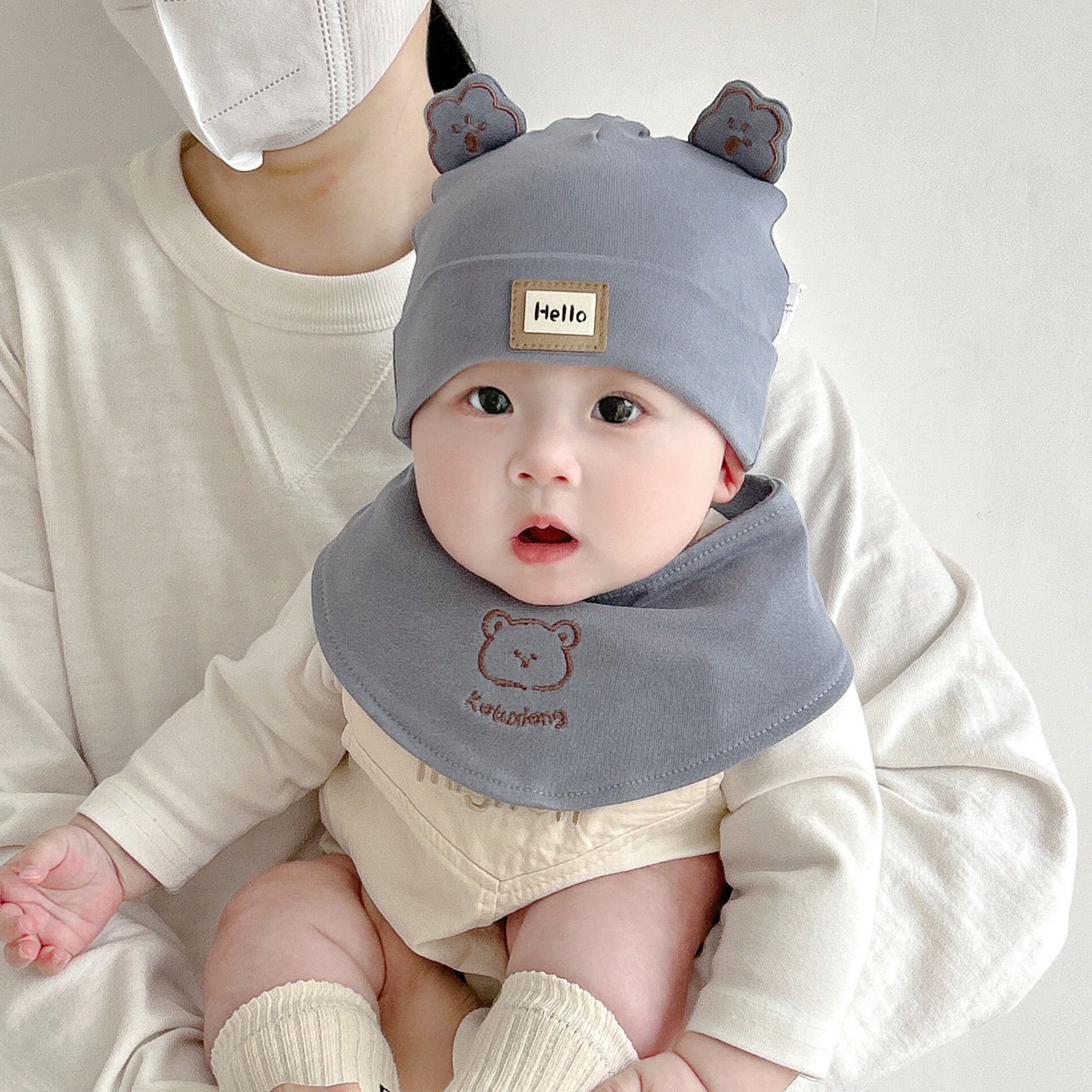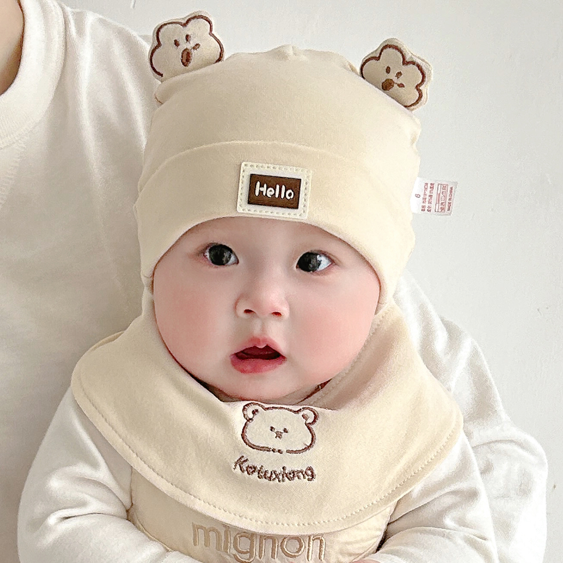 Katu медведь детская шапка 1-3-6-9 месяцев шапка плода весна и осень двухслойная хлопчатобумажная детская шляпа для малышей