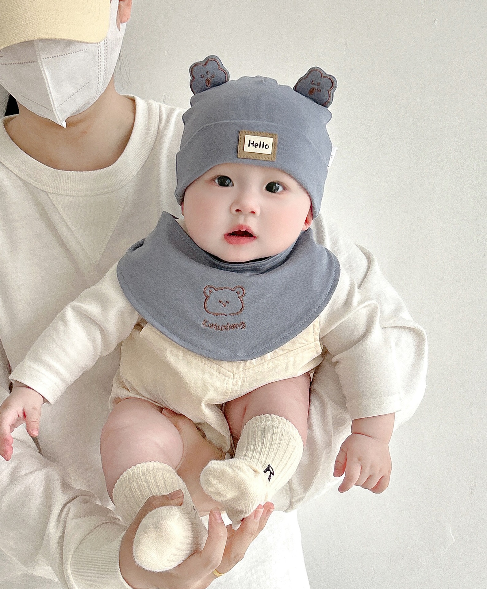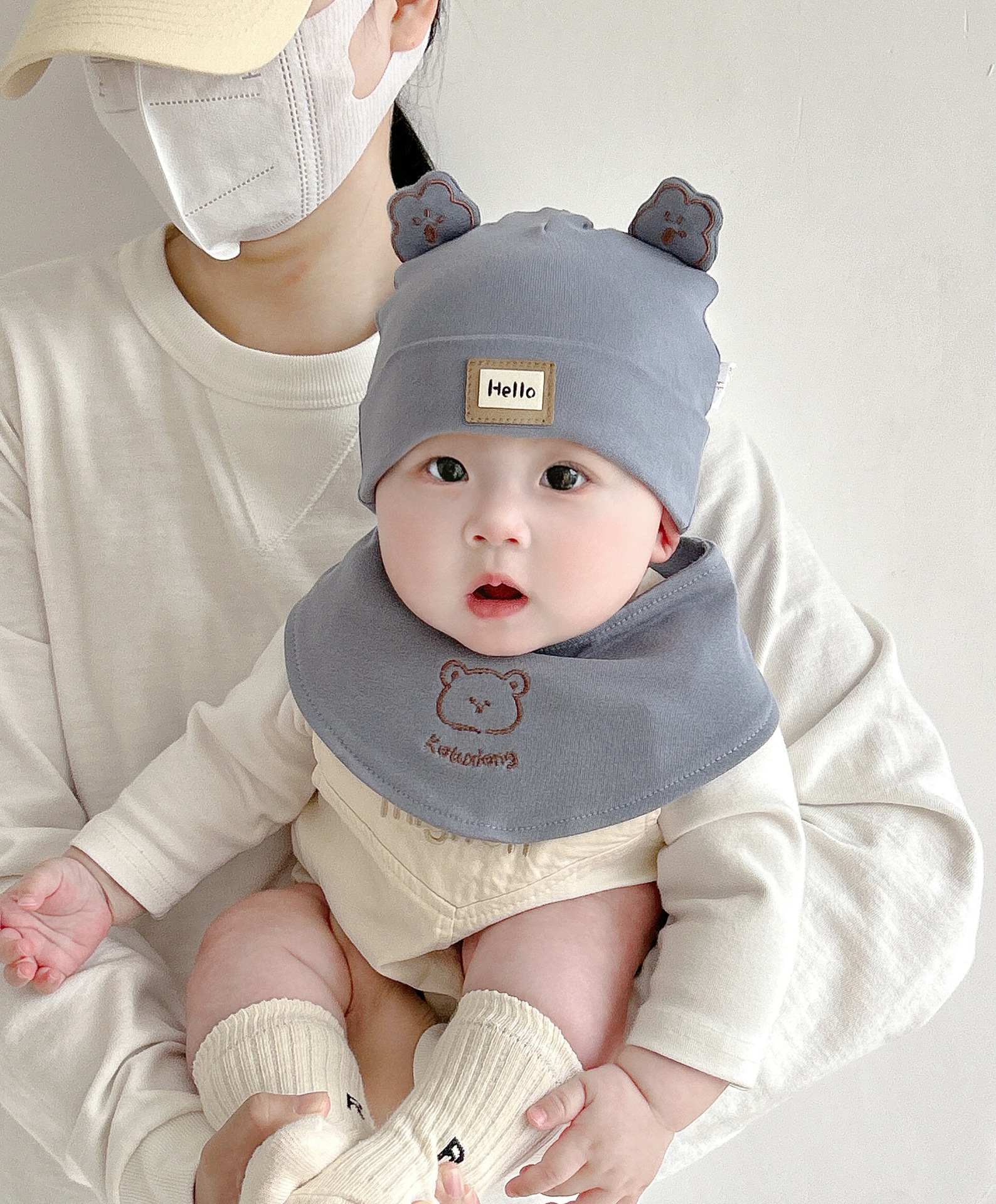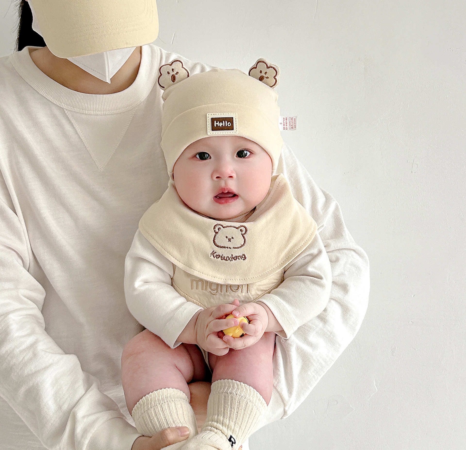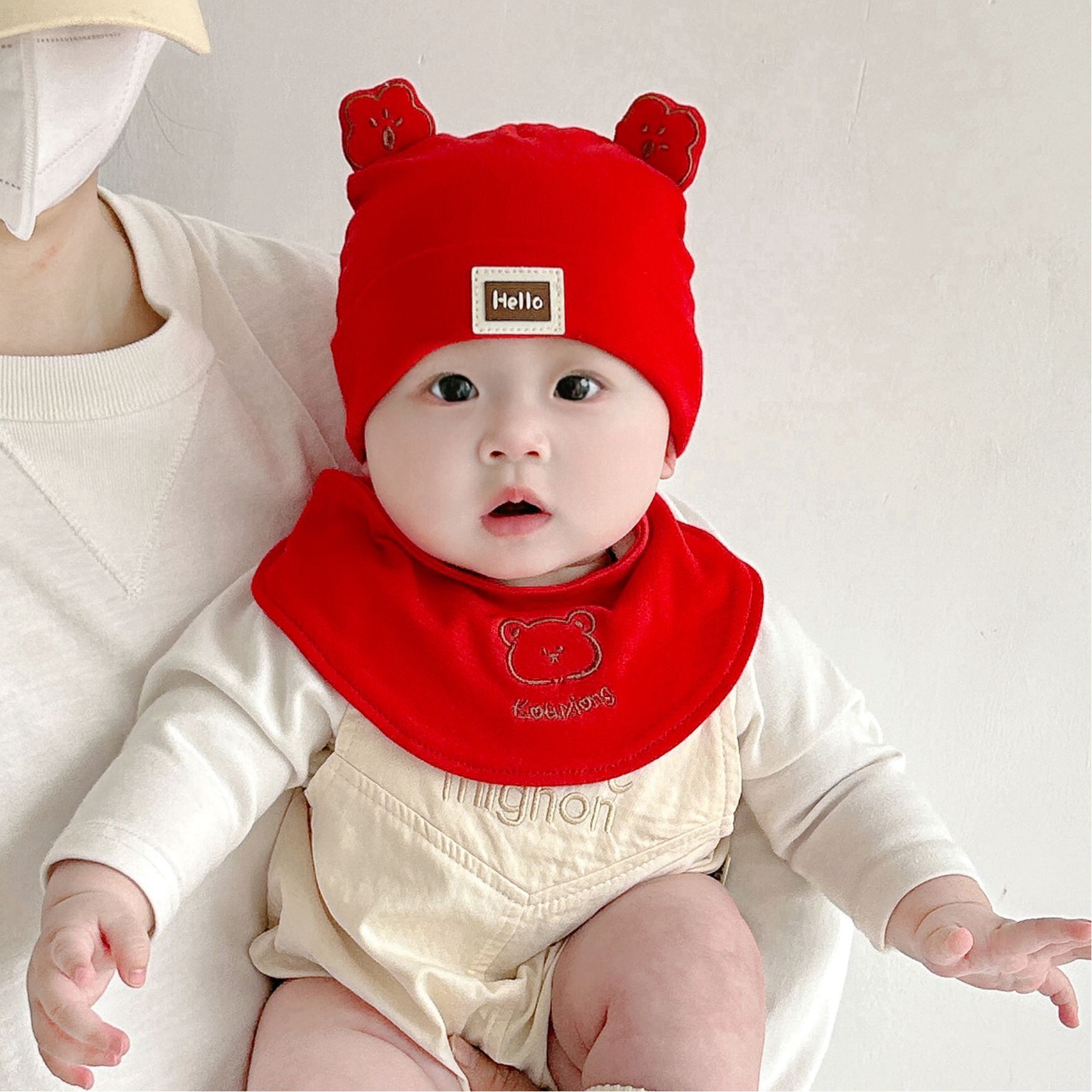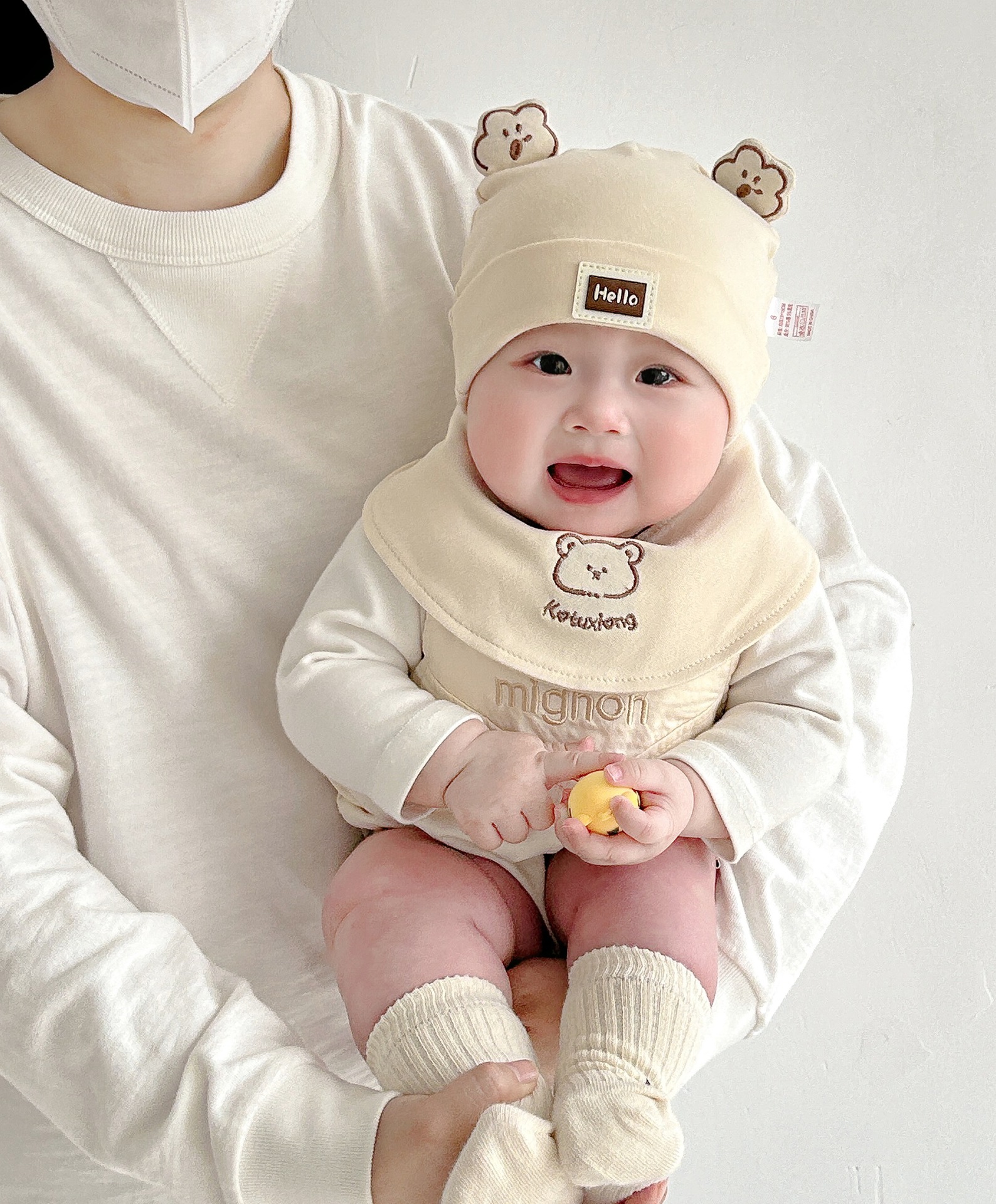 Katu медведь детская шапка 1-3-6-9 месяцев шапка плода весна и осень двухслойная хлопчатобумажная детская шляпа для малышей