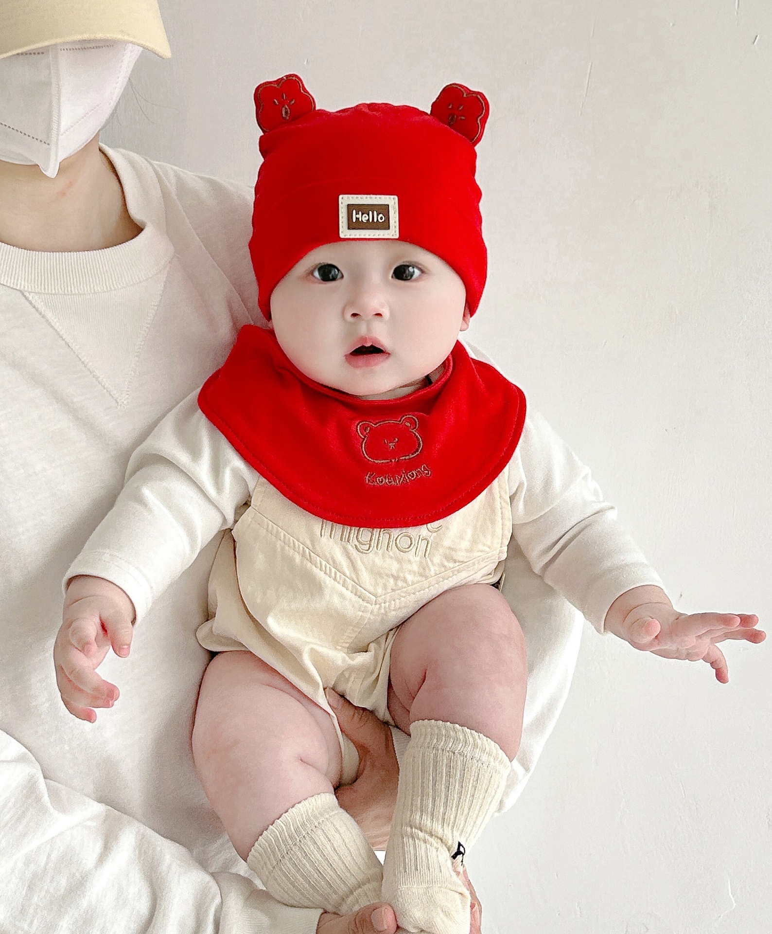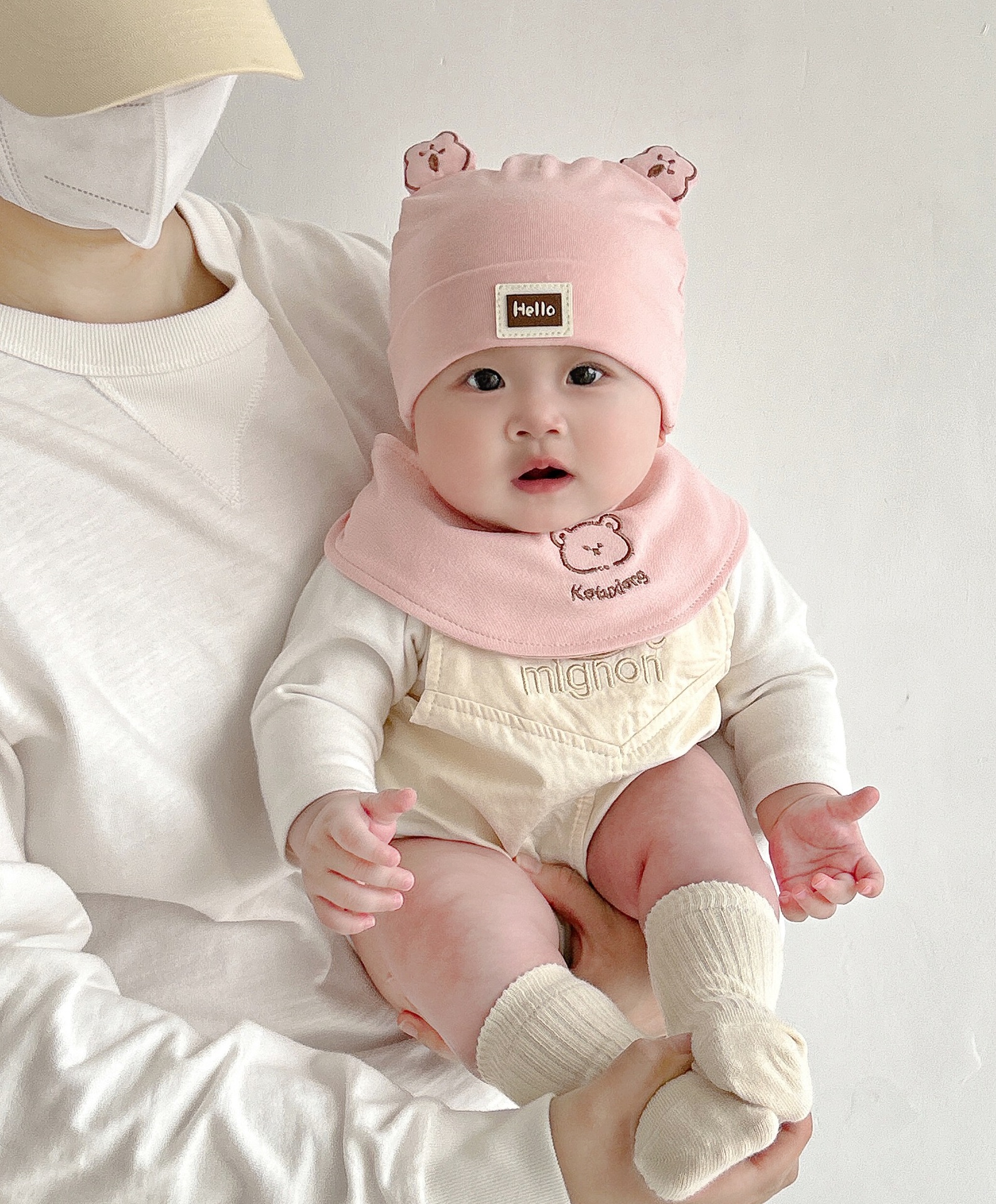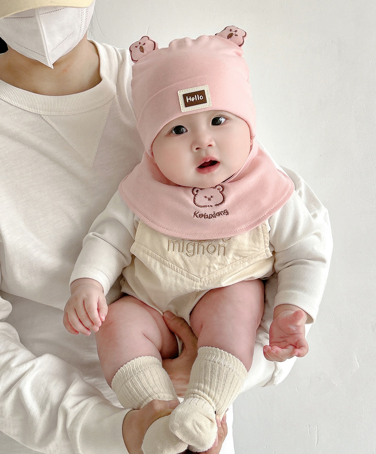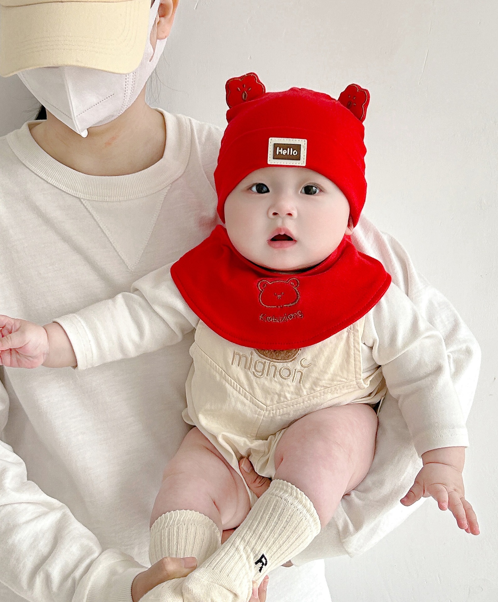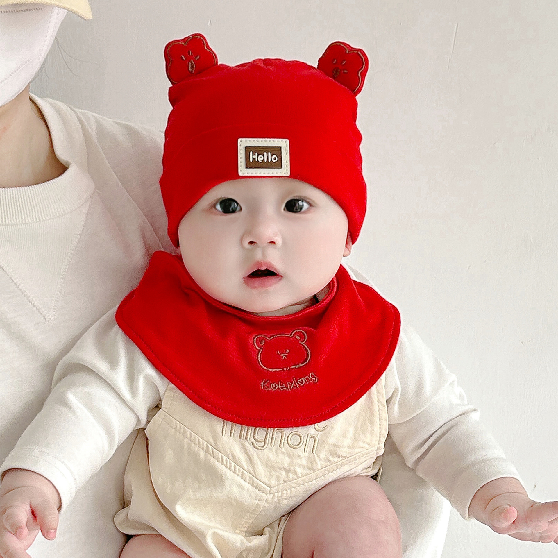 Katu медведь детская шапка 1-3-6-9 месяцев шапка плода весна и осень двухслойная хлопчатобумажная детская шляпа для малышей