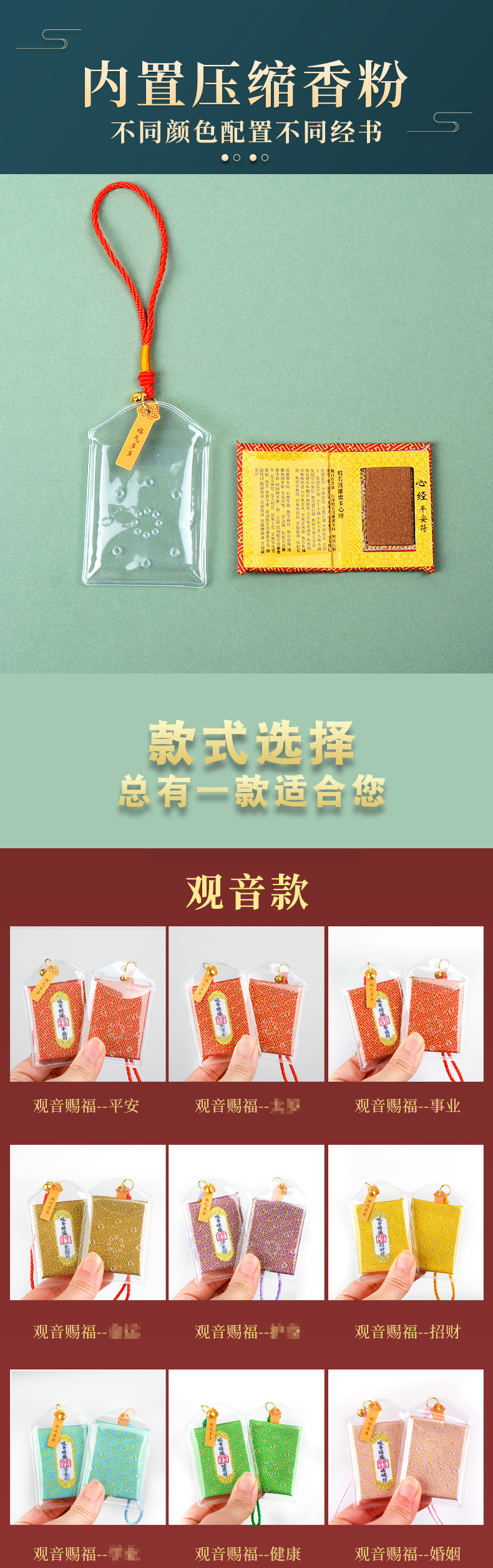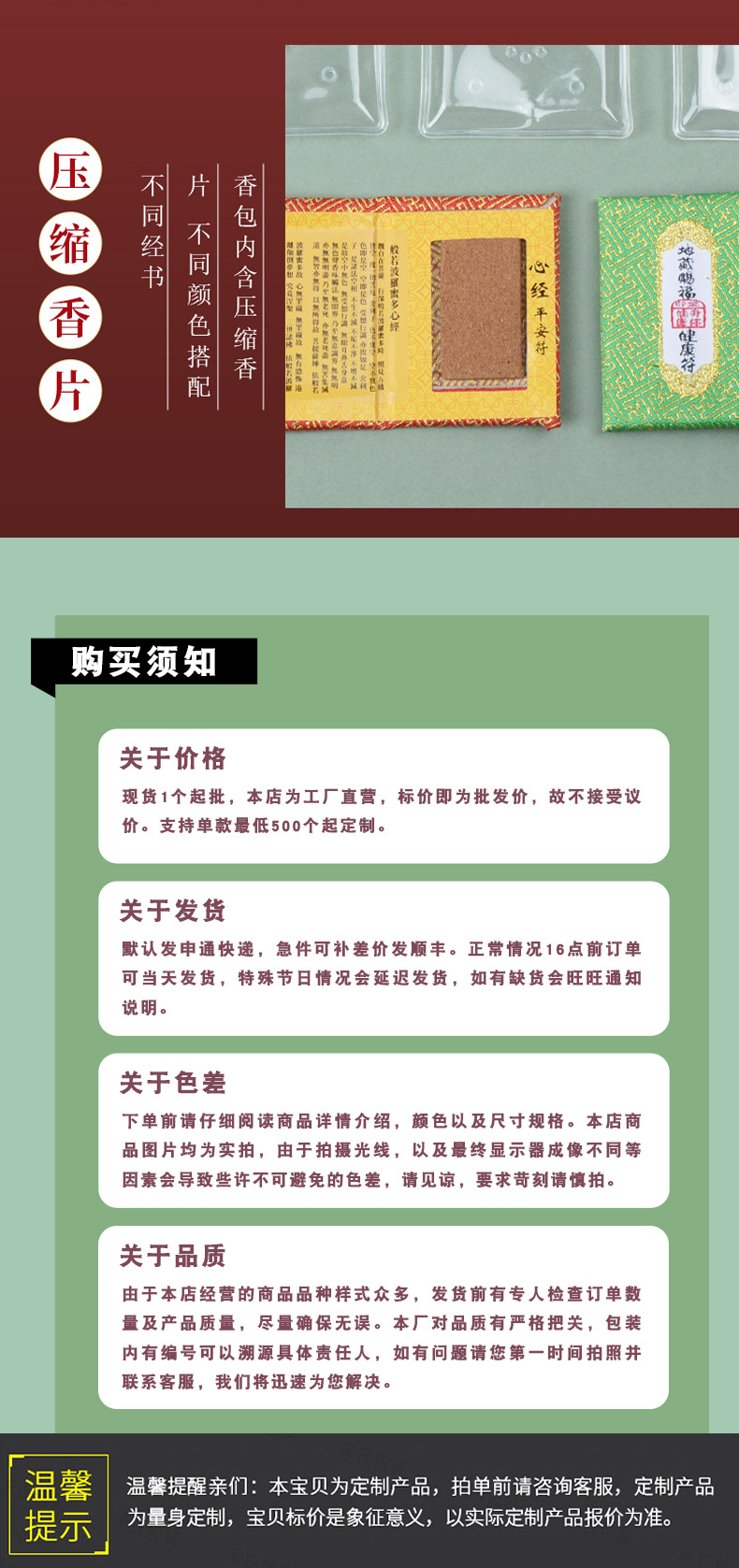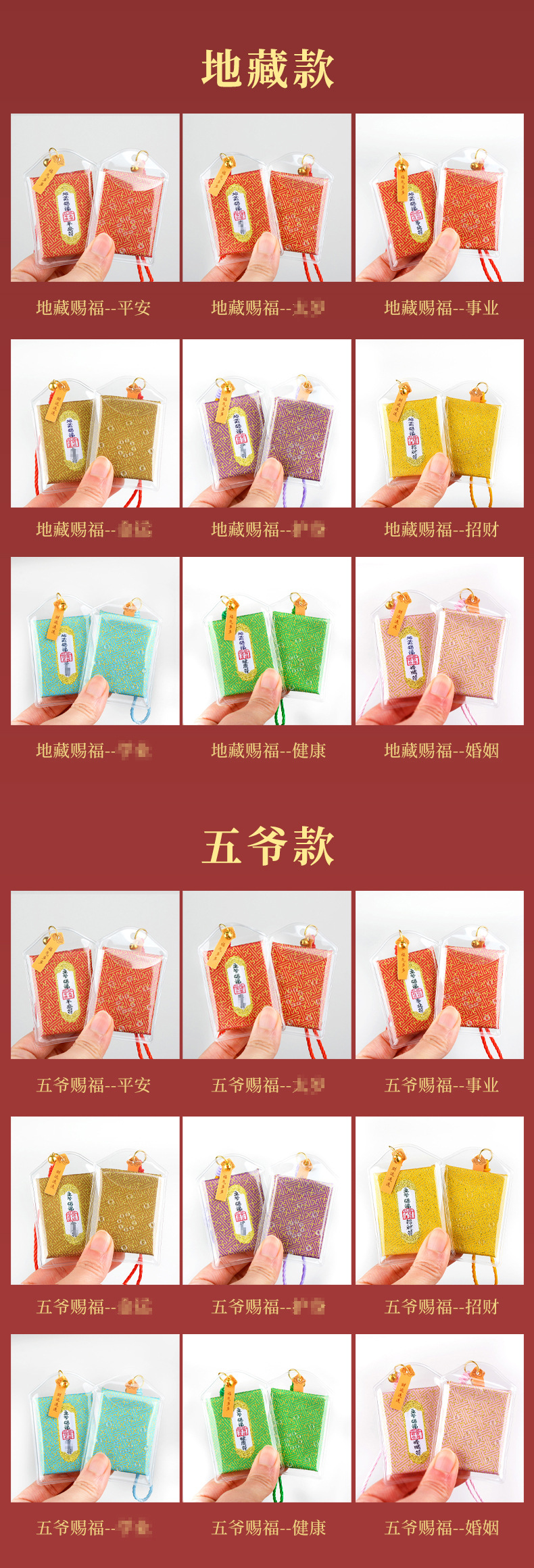 Благословение Гуаньинь - Красный Спокойствие (содержит спрессованные таблетки благовоний и священные писания); Благословения Гуаньинь - Красная карьера (содержит сжатые таблетки благовоний и священные писания); Благословение Гуаньинь - Красный год (содержит сжатые таблетки благовоний и писания); Благословение Гуаньинь — Фиолетовое тело (содержит сжатые таблетки благовоний и писания); Благословение Гуаньинь – Желтый цвет для привлечения богатства (содержит спрессованные таблетки благовоний и священные писания); Благословение Гуаньинь — Кофейное золото (содержит сжатые ароматические таблетки и писания); Благословение Гуаньинь – зеленое и здоровое (содержит сжатые таблетки благовоний и писания); Благословение Гуаньинь - Hulan Industry (содержит сжатые таблетки благовоний и писания); Благословение Гуаньинь - Розовый брак (содержит сжатые таблетки благовоний и священные писания); Благословение Кситигарбха - Красный Символ Удачливости (Включает Сжатые Таблетки Ароматических Палочек и Сутру); Благословение Кситигарбхи - Красная карьера (содержит сжатые таблетки благовоний и священные писания); Благословение Кситигарбха - Красный Год (содержит сжатые таблетки благовоний и писания); Благословение Кситигарбхи — Фиолетовое тело (содержит сжатые таблетки благовоний и писания); Благословение Кситигарбха – Желтый, Привлекает Богатство (Включает Сжатые Таблетки Ароматических Палочек и Сутру); Благословение Кситигарбхи — Коричневое золото (содержит сжатые ароматические таблетки и писания); Благословение Кситигарбха - Зеленое здоровье (содержит сжатые таблетки благовоний и священные писания); Благословение Кситигарбха — Промышленность Голубого озера (содержит сжатые таблетки благовоний и писания); Благословение Кситигарбхи – Розовый брак (содержит спрессованные ароматизированные таблетки и священные писания); Благословение пяти богов — красный благоприятный знак (включает в себя сжатые таблетки благовоний и сутры); Благословение пяти богов — красная удача (включает в себя сжатые таблетки благовоний и буддийские сутры); Благословение от Пятого Мастера - Красный Год (содержит сжатые ароматические таблетки и писания); Благословение от пятого патриарха — Фиолетовое тело (содержит сжатые таблетки благовоний и писания); Благословение пяти богов — желтый талисман на удачу (включает в себя сжатые таблетки благовоний и сутру); Благословение от Пятого Мастера - Кофе Золото (Содержит сжатые ароматические таблетки и писания); Благословение пяти богов — зеленый и здоровый (включает в себя сжатые таблетки благовоний и буддийские сутры); Благословение от Пятого Патриарха - Хуланская промышленность (содержит сжатые ароматические таблетки и писания); Благословение пяти богов — Розовый брак (включает в себя сжатые таблетки благовоний и сутру); Пробуждение мудрости Манджусри - Мудрость (содержит сжатые таблетки благовоний и священные писания); Упаковка с красной карточкой (только упаковка); Конвертная упаковка (только упаковка); Упаковка из желтой бумажной картона (только упаковка)