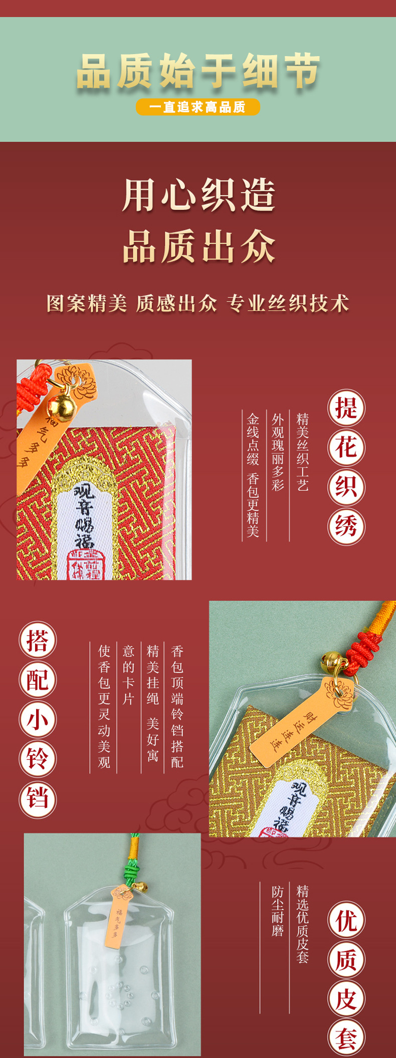 Ароматический мешочек с благословением Гуаньинь из горы Путуо, год Лошади, амулет мира, благословение храма, саквояж с благословением, защитный мешочек в китайском стиле, ароматический мешочек для молитв