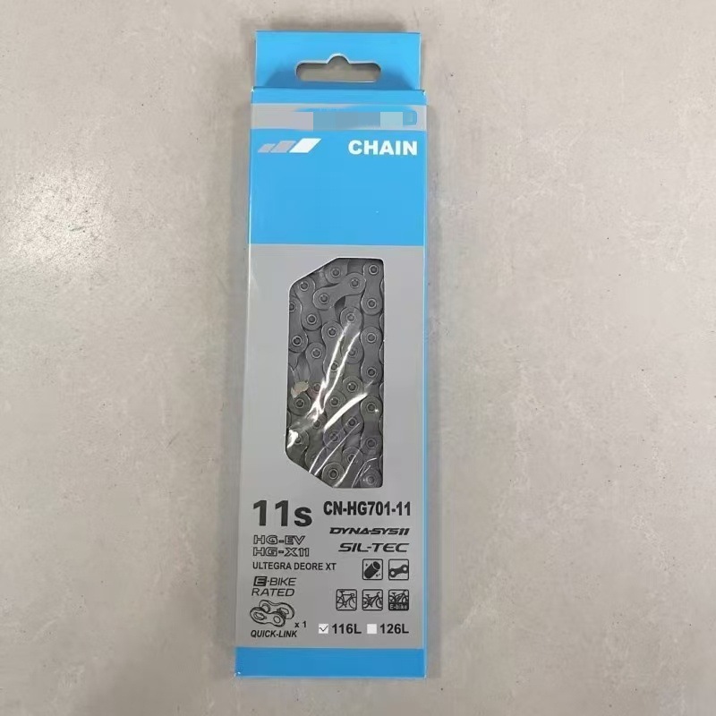 HG40 (678 скоростной цепи); HG53 (9-скоростная цепь); HG54 (10-скоростная цепь); HG701 (11-скоростная цепь); HG95 (10-скоростная цепь) обычное качество; HG95 (10-скоростная цепь) хорошее качество; Цепь переменной скорости Meia M30 (6 скоростей 116 секций); Цепь с регулируемой скоростью IG51 (6/7/8 скоростей 116 секций); Гальваническая цепь регулируемой скорости IG51 [скорость 6/7/8, 116 секций]; Цепь регулируемой скорости HG73 [9-скоростная, 116 секций]; HG901-11 цепь с регулируемой скоростью [11 скоростей 116 секций]; Цепь с регулируемой скоростью M8100 [12 скоростей 126 секций]; Стандартная цепь переменной скорости XT (6/7/8 скоростей, 116, секций); Стандартная гальваническая трансмиссионная цепь XT [6/7/8 скоростей, 116 секций]; Стандартная цепь переменной скорости XT [9-скоростная 116 секций]; Стандартная цепь переменной скорости XT [10 скоростей 116 секций]; Ланцюг регулируемой скорости с гальваническим покрытием FSC [10 скоростей, 116 секций]; Ланцюг регулируемой скорости с гальваническим покрытием FSC [11 скоростей 116 секций]; Ланцюг регулируемой скорости с гальваническим покрытием FSC [12 скоростей 116 секций]
