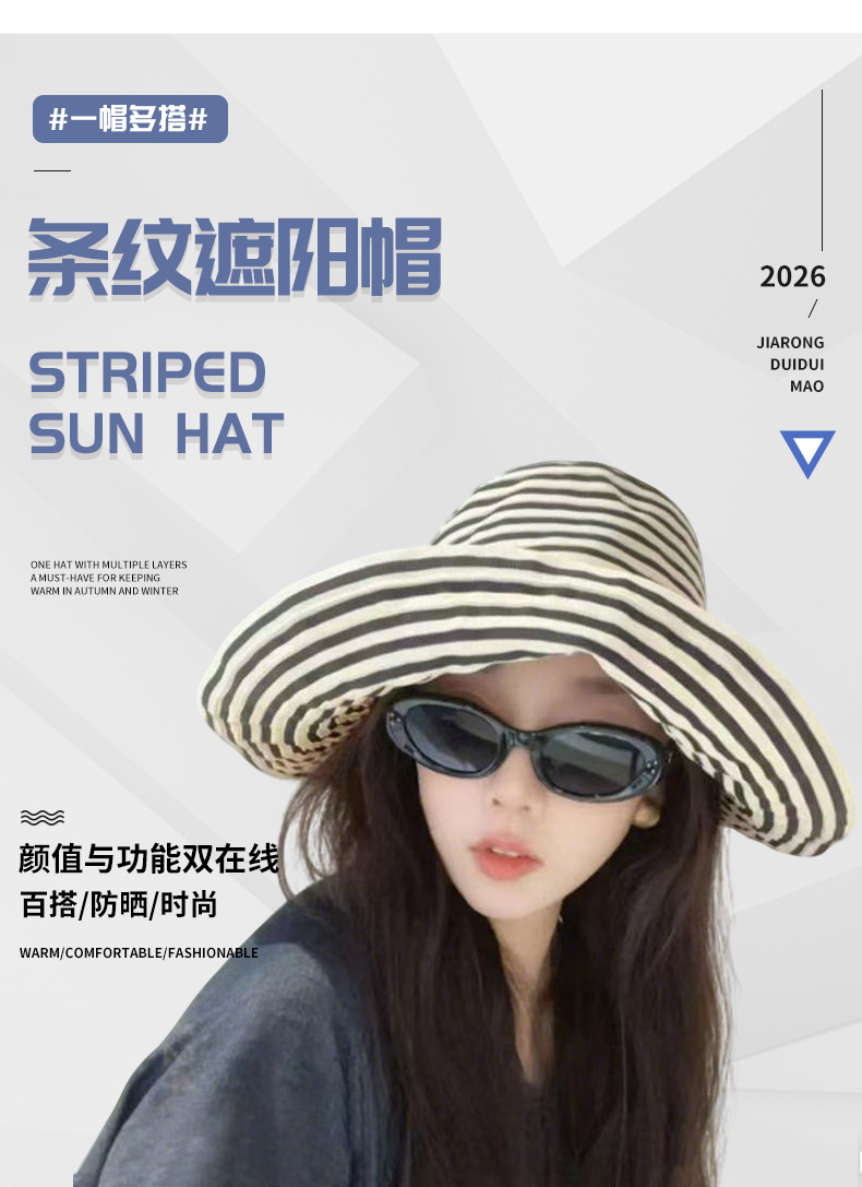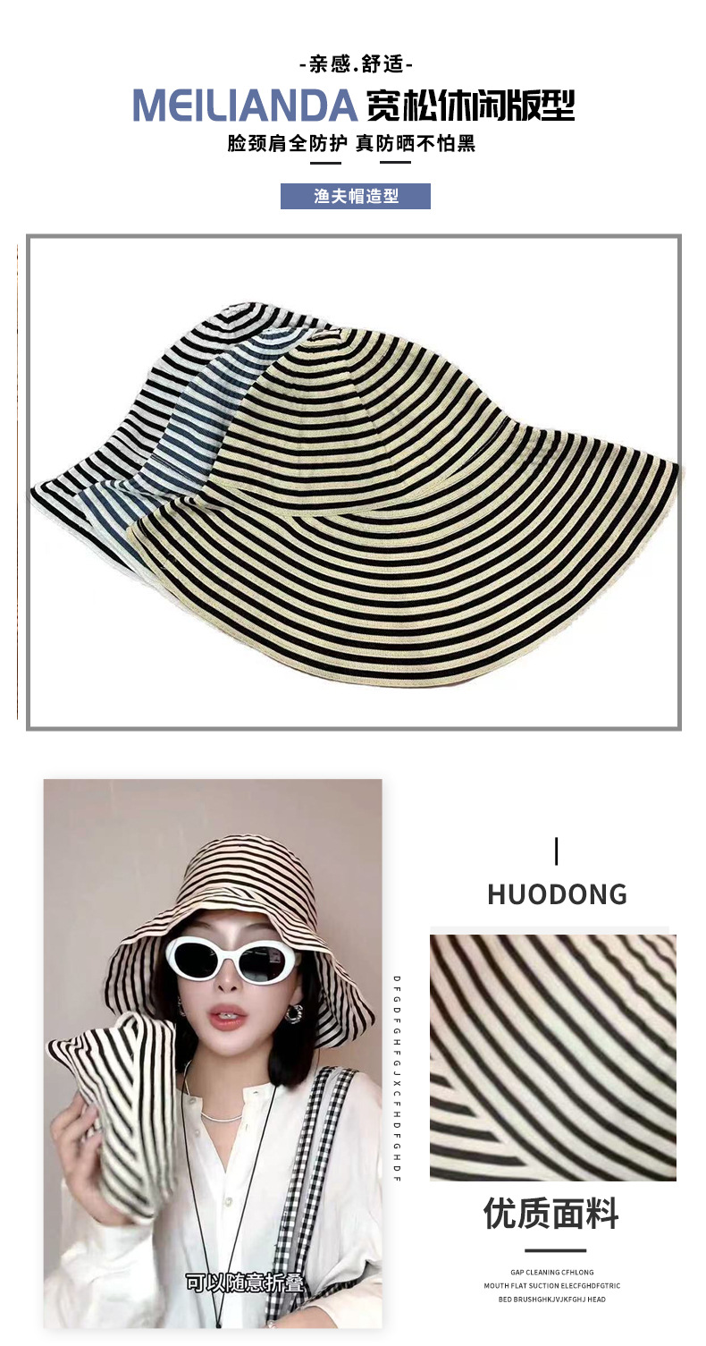 Шляпа от солнца в японском стиле, складная полосатая панама, летняя защита от солнца, модная защита от ультрафиолета, самая простая в сочетании, шляпа с большим бассейном для головы