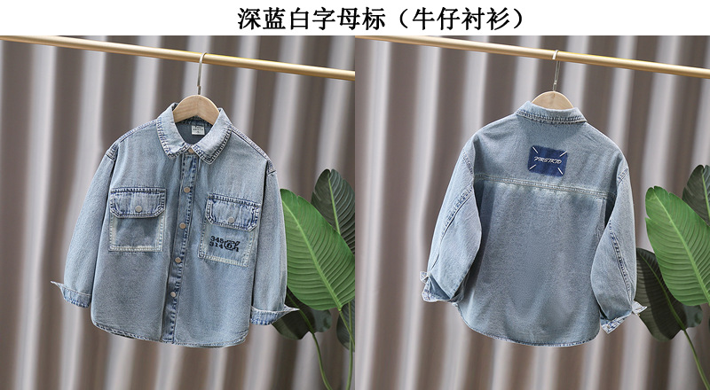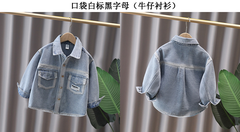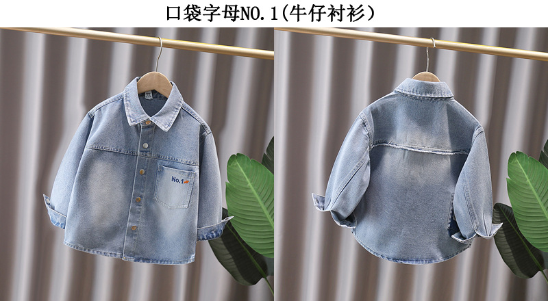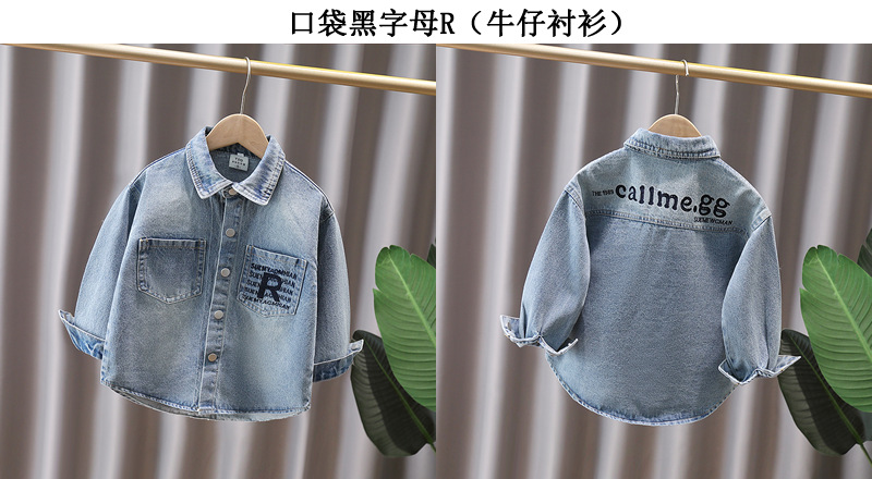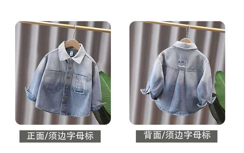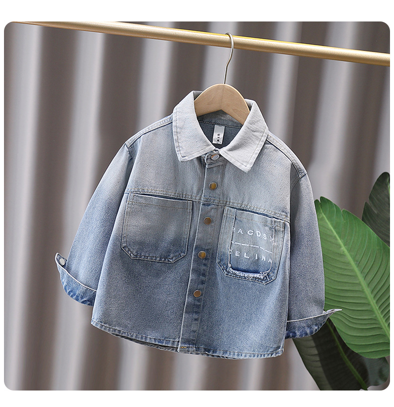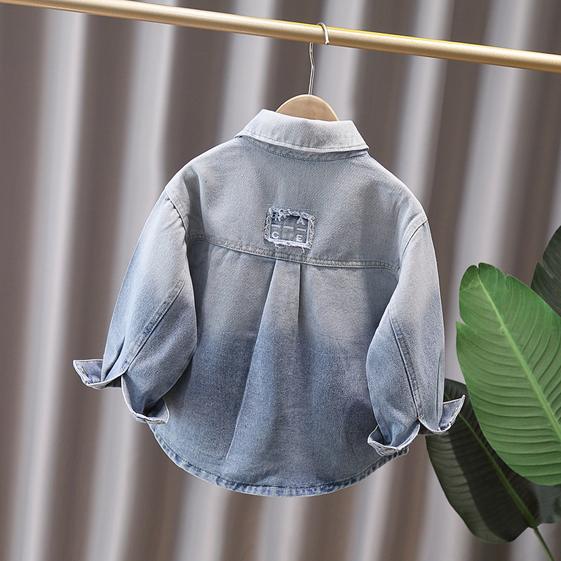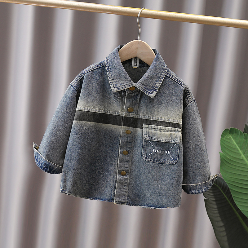Джинсовая рубашка для мальчиков весна и осень Детское тонкое пальто 2025 новый иностранный мальчик с лацканом осенняя рубашка с длинными рукавами