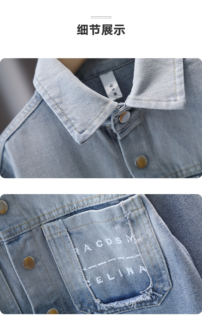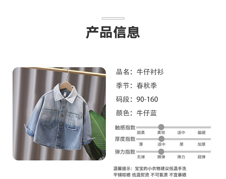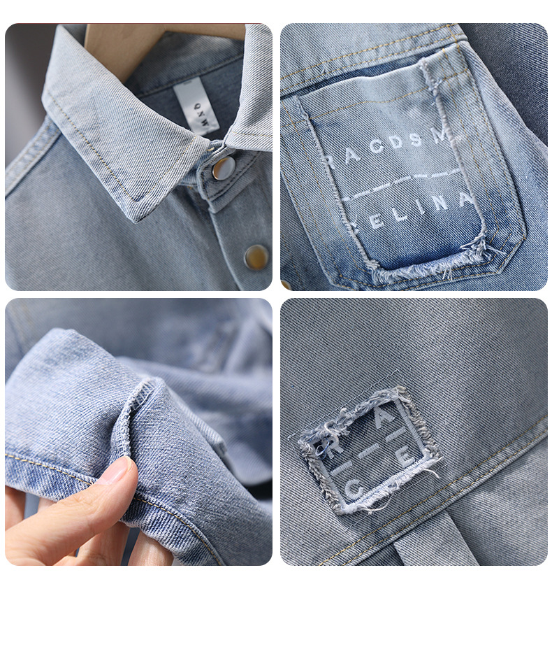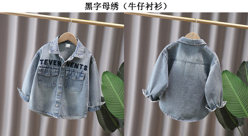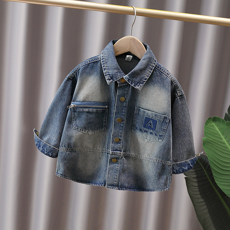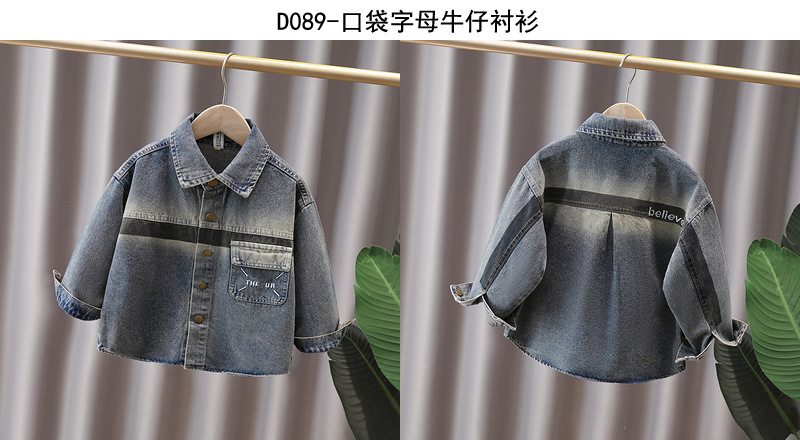 Джинсовая рубашка для мальчиков весна и осень Детское тонкое пальто 2025 новый иностранный мальчик с лацканом осенняя рубашка с длинными рукавами
