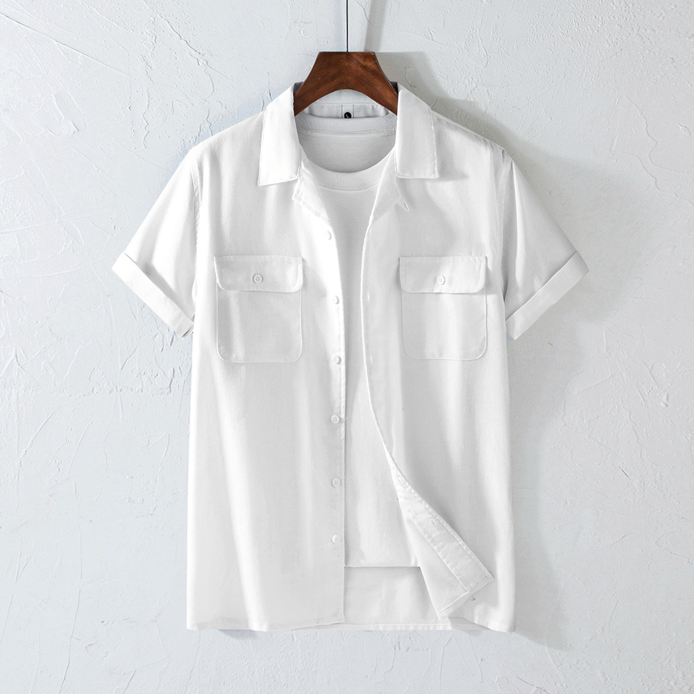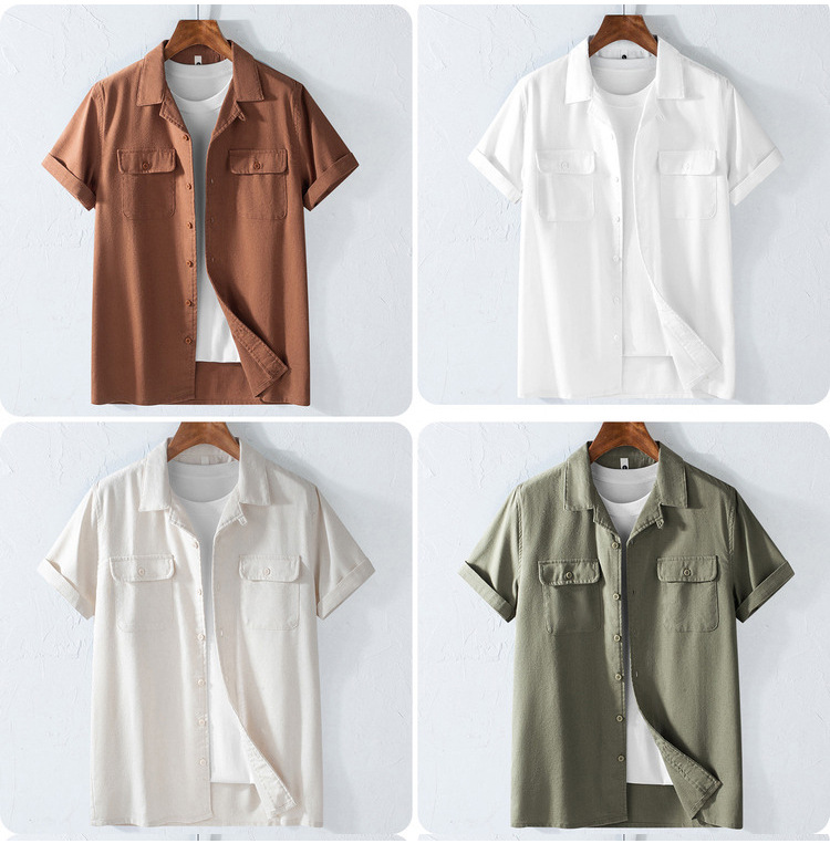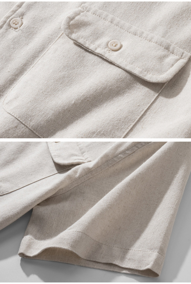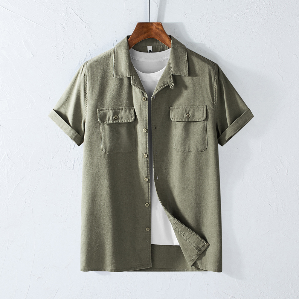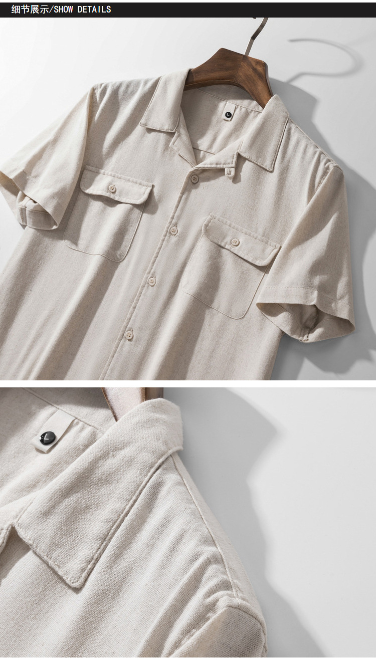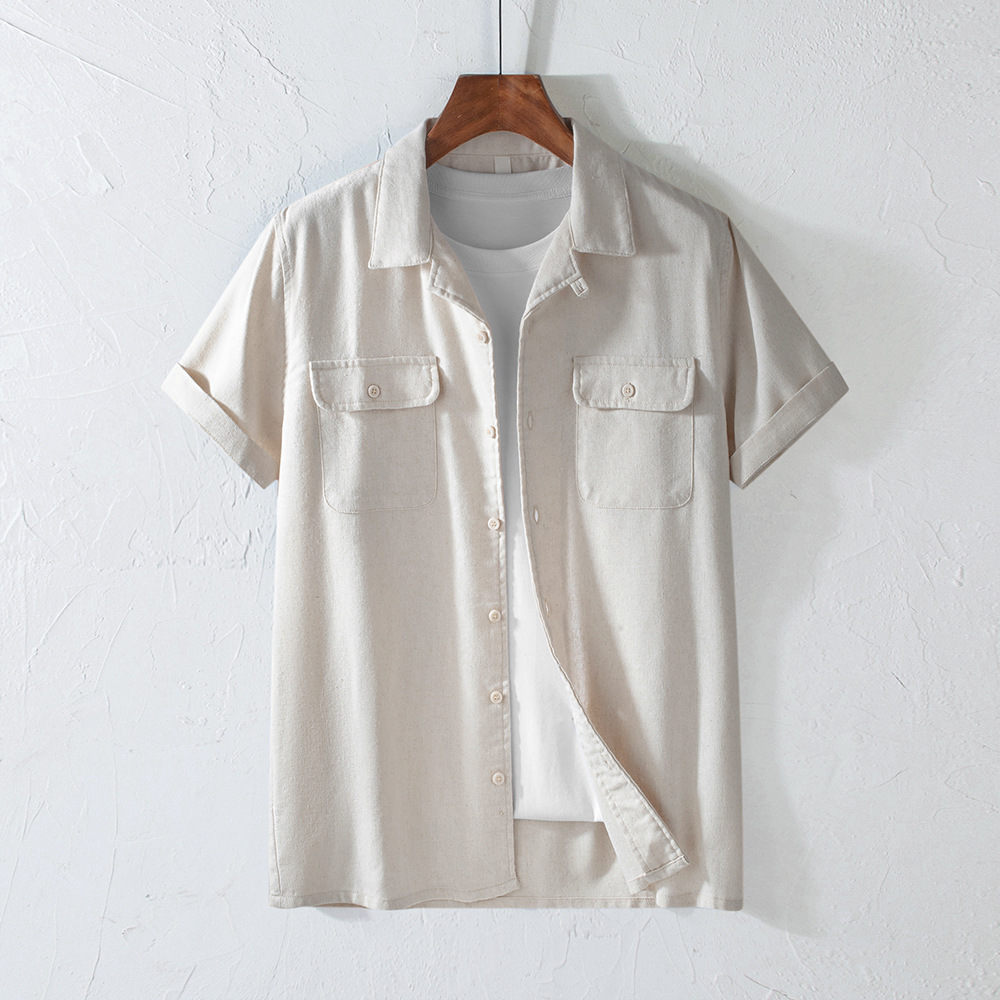 Хлопок и льна с короткими рукавами кубинский воротник мужская рубашка карманы американский ретро лацканы