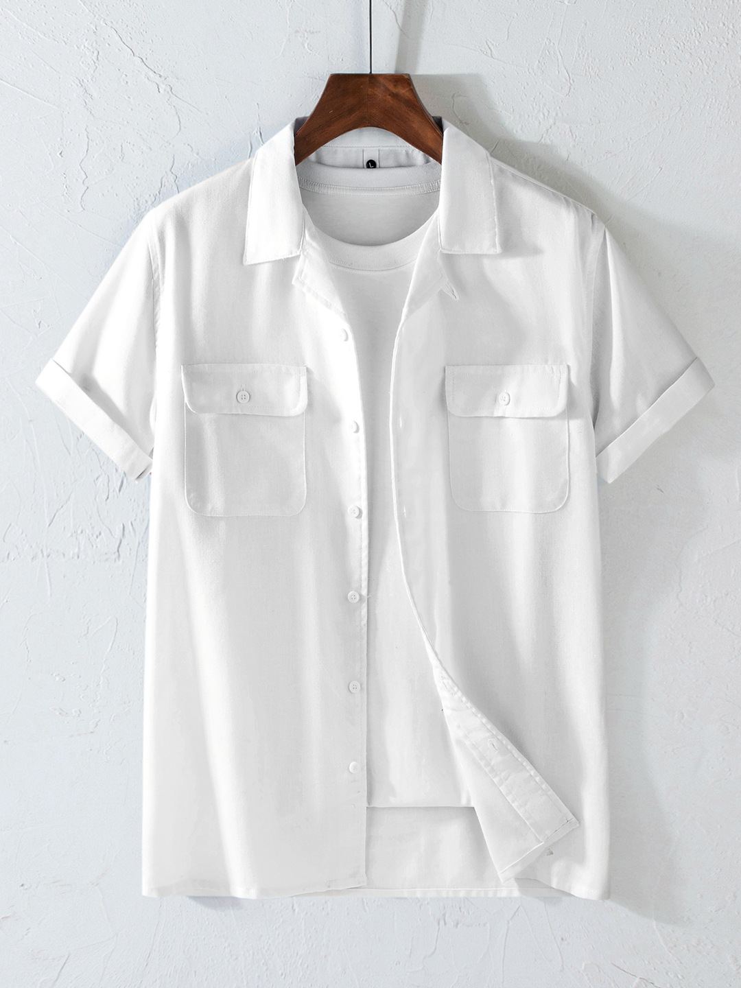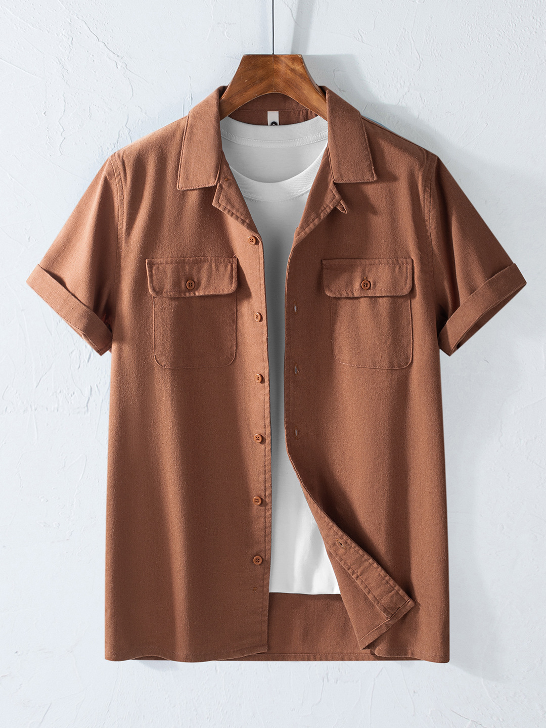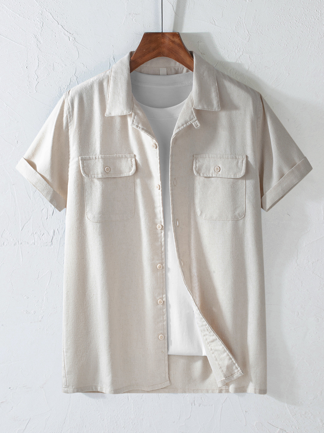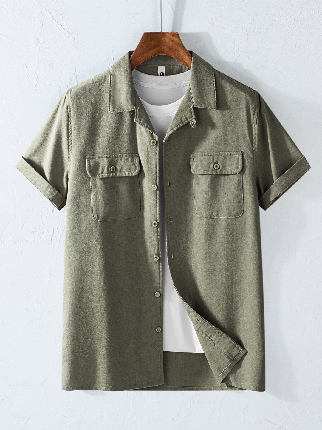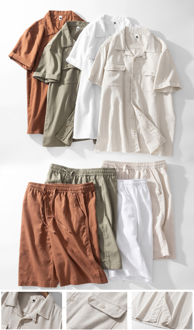 Хлопок и льна с короткими рукавами кубинский воротник мужская рубашка карманы американский ретро лацканы