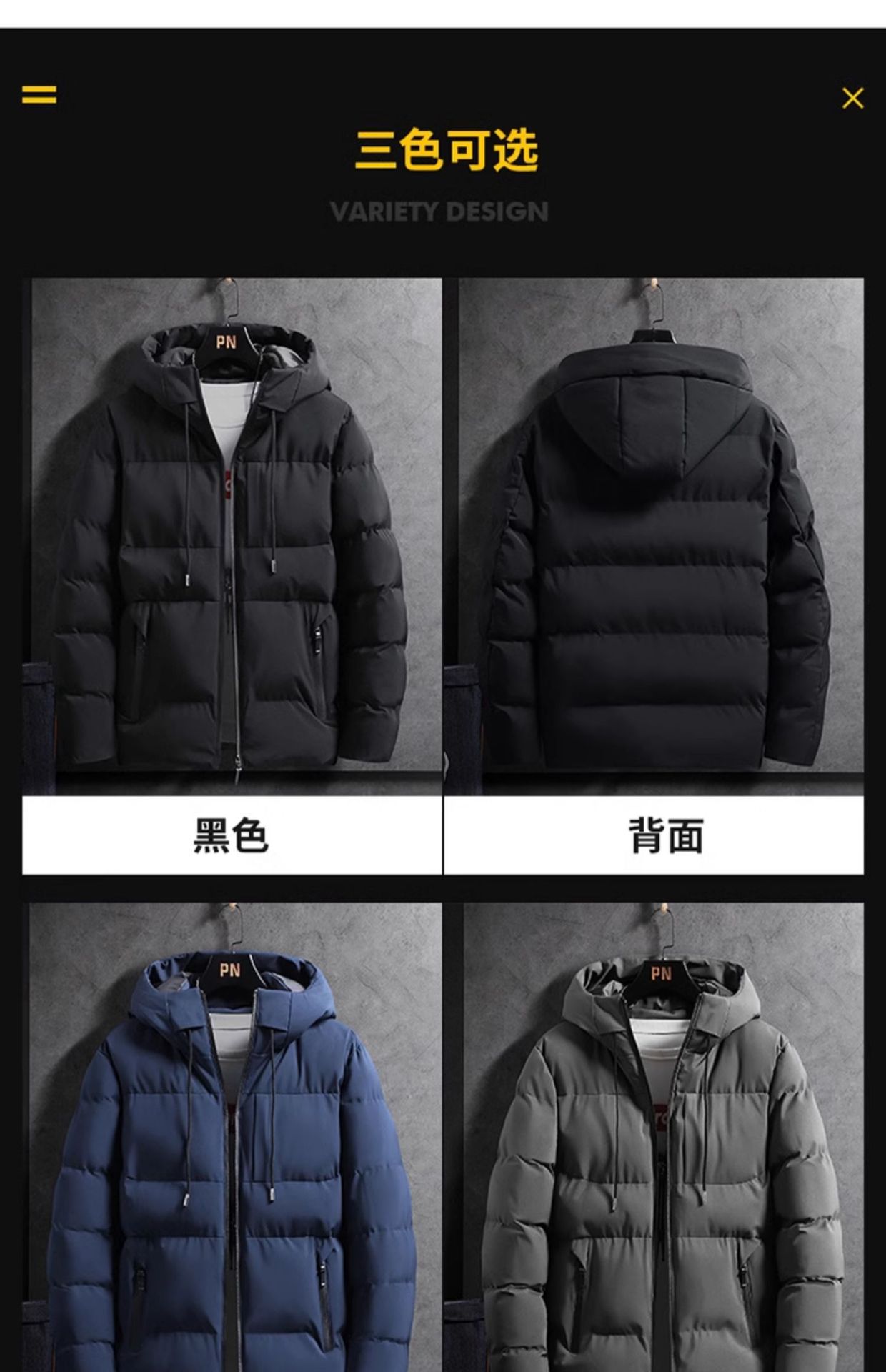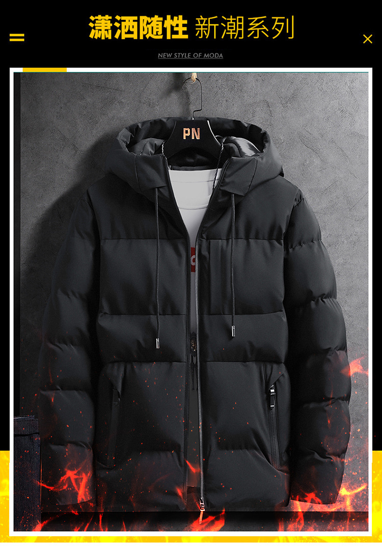 Сплошная цветная хлопчатобумажная одежда с капюшоном приливная мужская зима 2024 новая теплая толстая хлопчатобумажная куртка зимняя куртка хлебная одежда