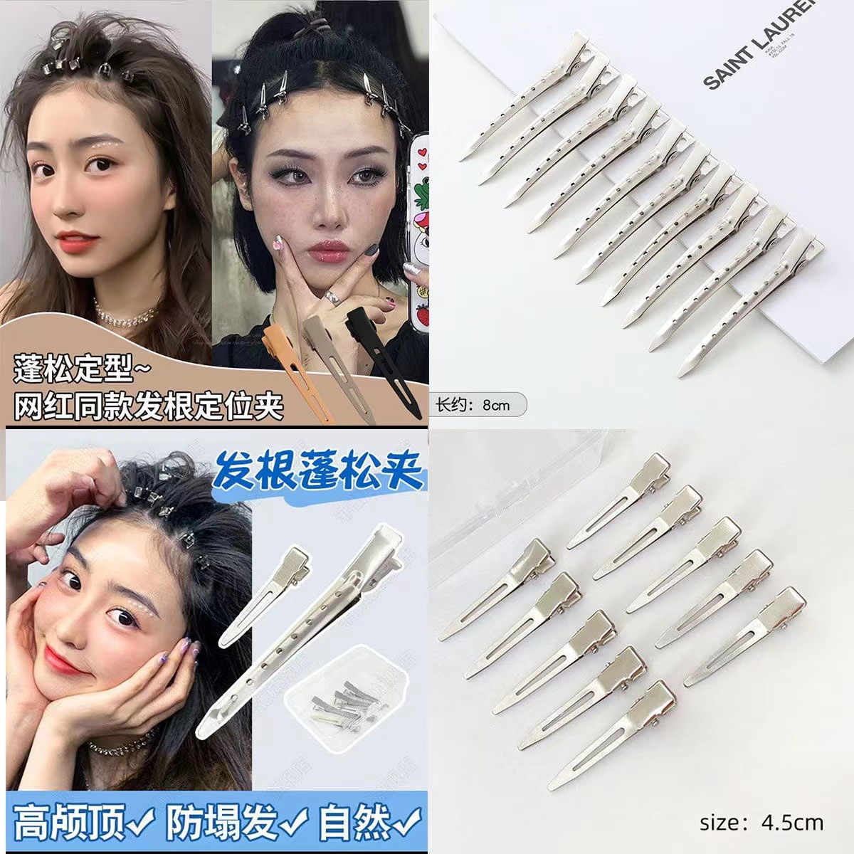 Корень волос пушистый зажим с боковой стороны челки макияж без следов заколки для волос