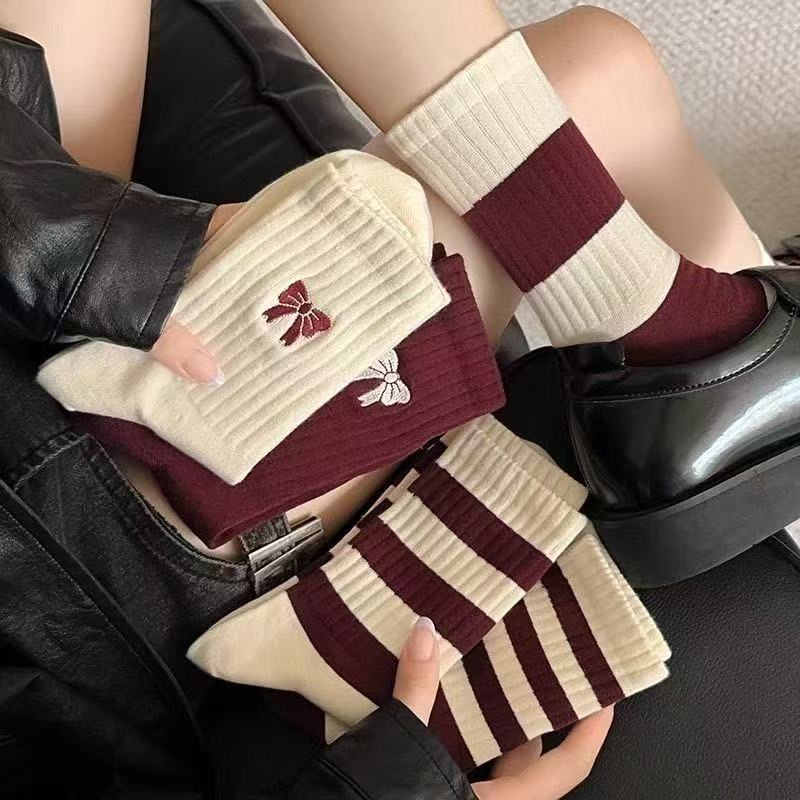 Ангольские красные носки женские четыре сезона новые бабочки средние чулки дикие полосатые чулки женские носки новогодние носки