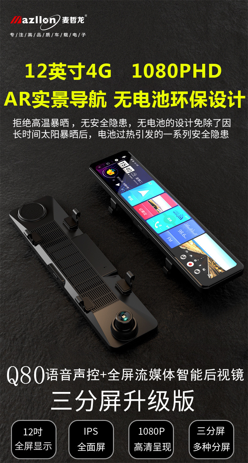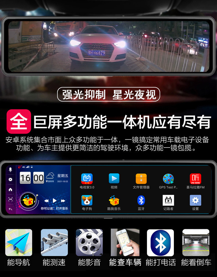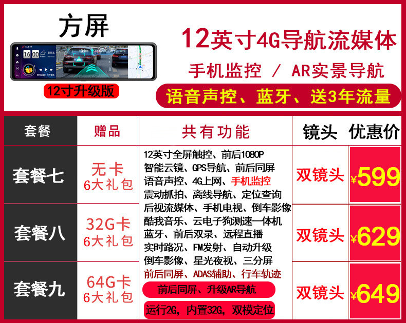 F6T новый 12-дюймовый 4G потоковый полноэкранный видеорегистратор электронная собака AR реальная навигация HD ночного видения ADA