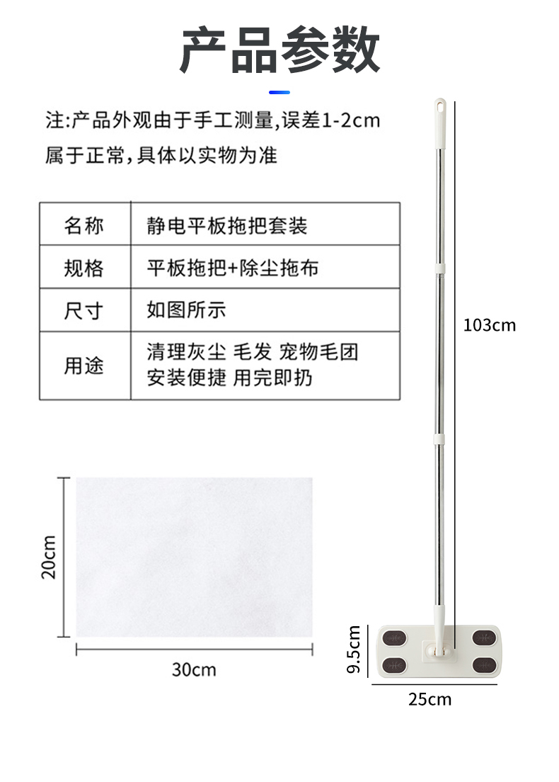 Белая упаковка 30 шт.); белые влажные салфетки; Белые утолщенные влажные салфетки; Трехсекционная швабра для шеста