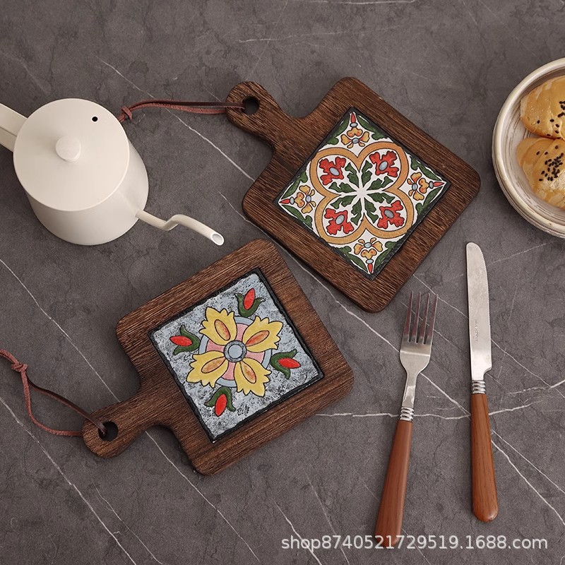Японский стиль из цельного дерева цветочная плитка теплоизоляционная подушка для посуды Домашняя ретро столовая подушка для посуды Песочная подушка для посуды Высокотемпературная подставка для кухонного стола