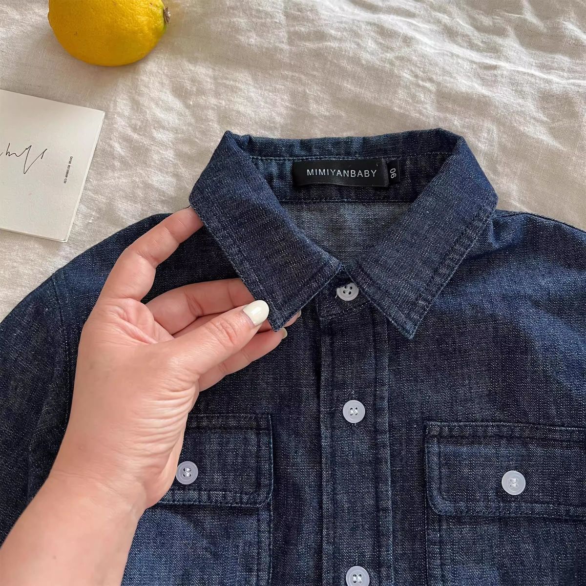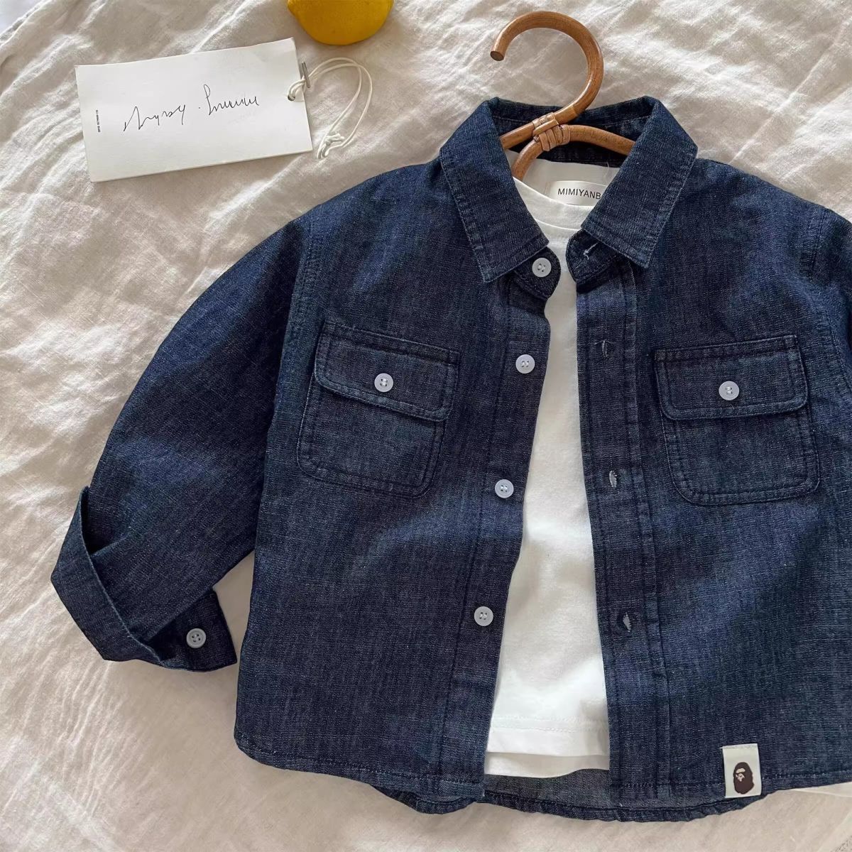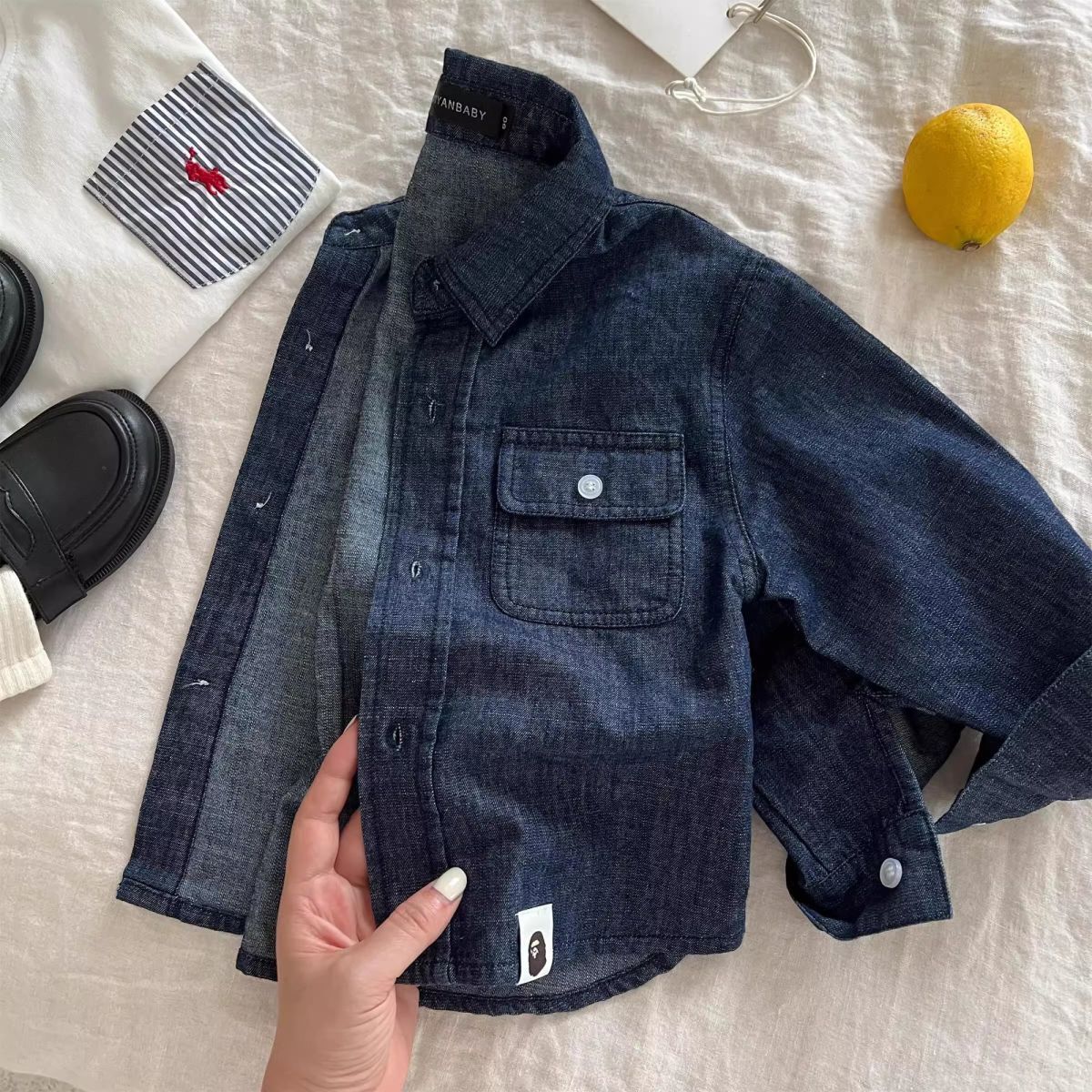 Детская джинсовая рубашка 2025 Новый стиль для мальчиков и девочек