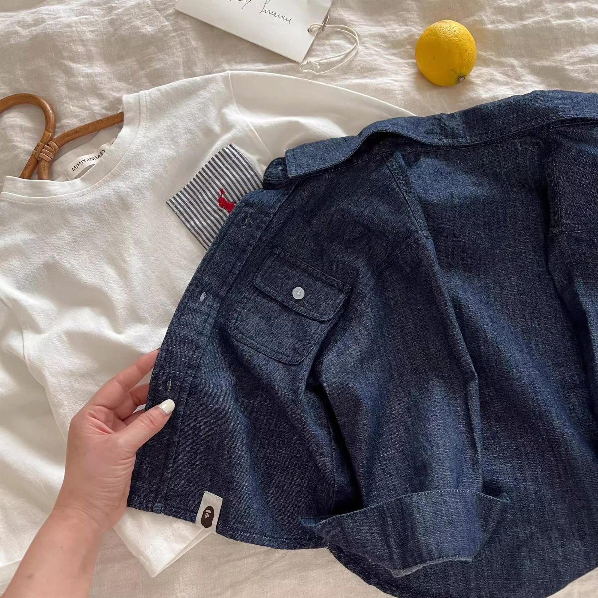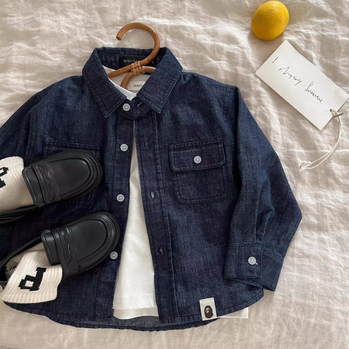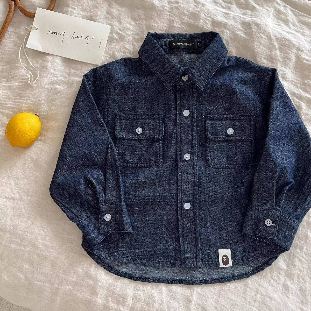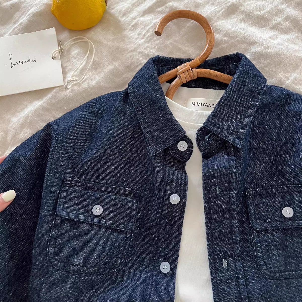 Детская джинсовая рубашка 2025 Новый стиль для мальчиков и девочек
