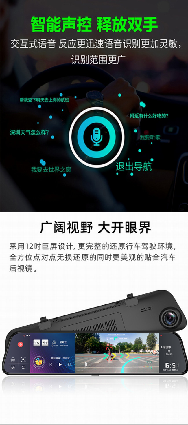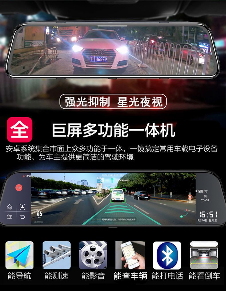 F6T новый умный экран облачный видеорегистратор двухобъективный электронный собака навигация HD ночного видения зеркало заднего вида