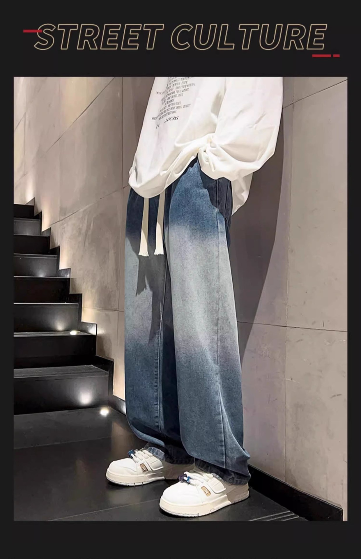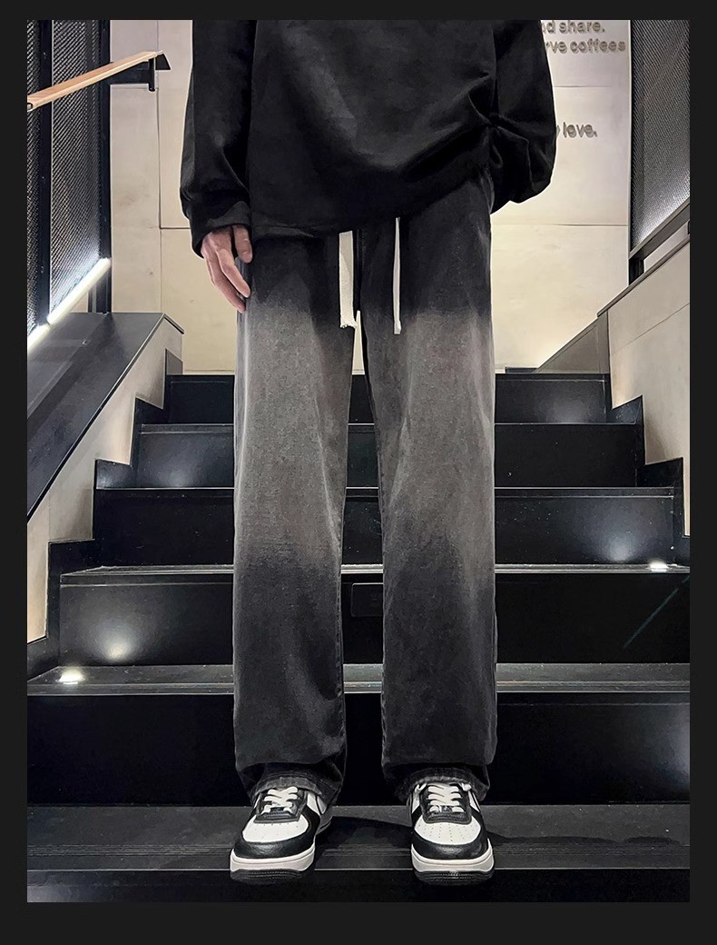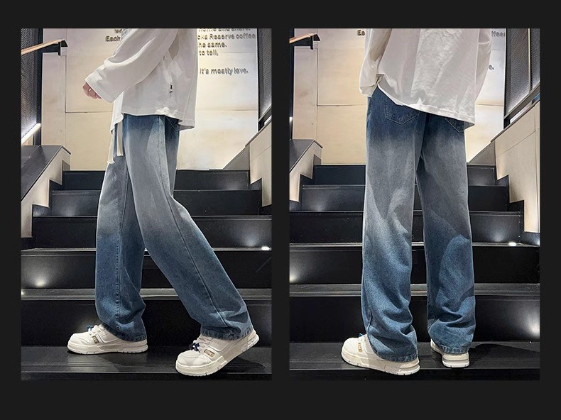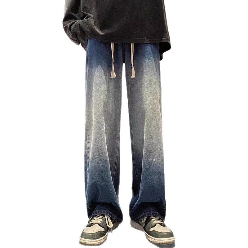 Американские высокие улицы градиентные стирание джинсы для мужчин и женщин весной и летом новые свободные прямые широкие брюки для ног прилив брюки для мужчин
