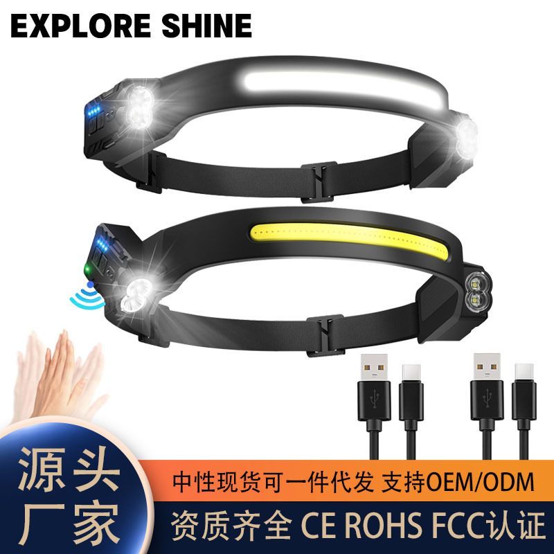 Трансграничная новая силиконовая двухголовая регулируемая головная лампа COB перезаряжаемая ночная езда на велосипеде дикий кемпинг индукционный свет