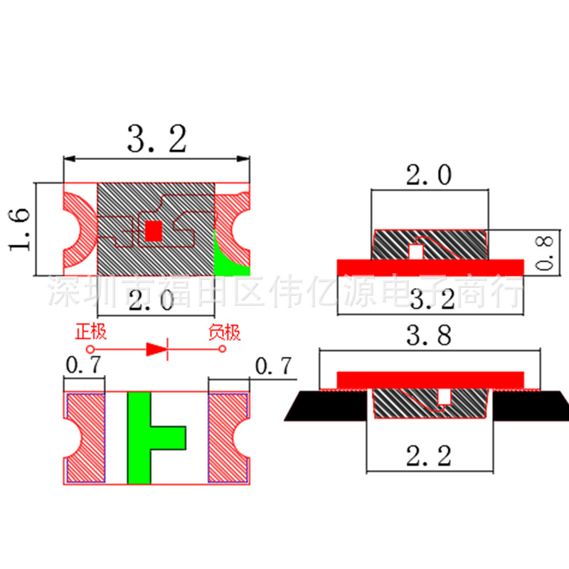 1206 анти-отредактированный красный свет синий желтый зеленый оранжевый белый свет 1206 анти-наклейки красный свет полный обратный светодиодный свет