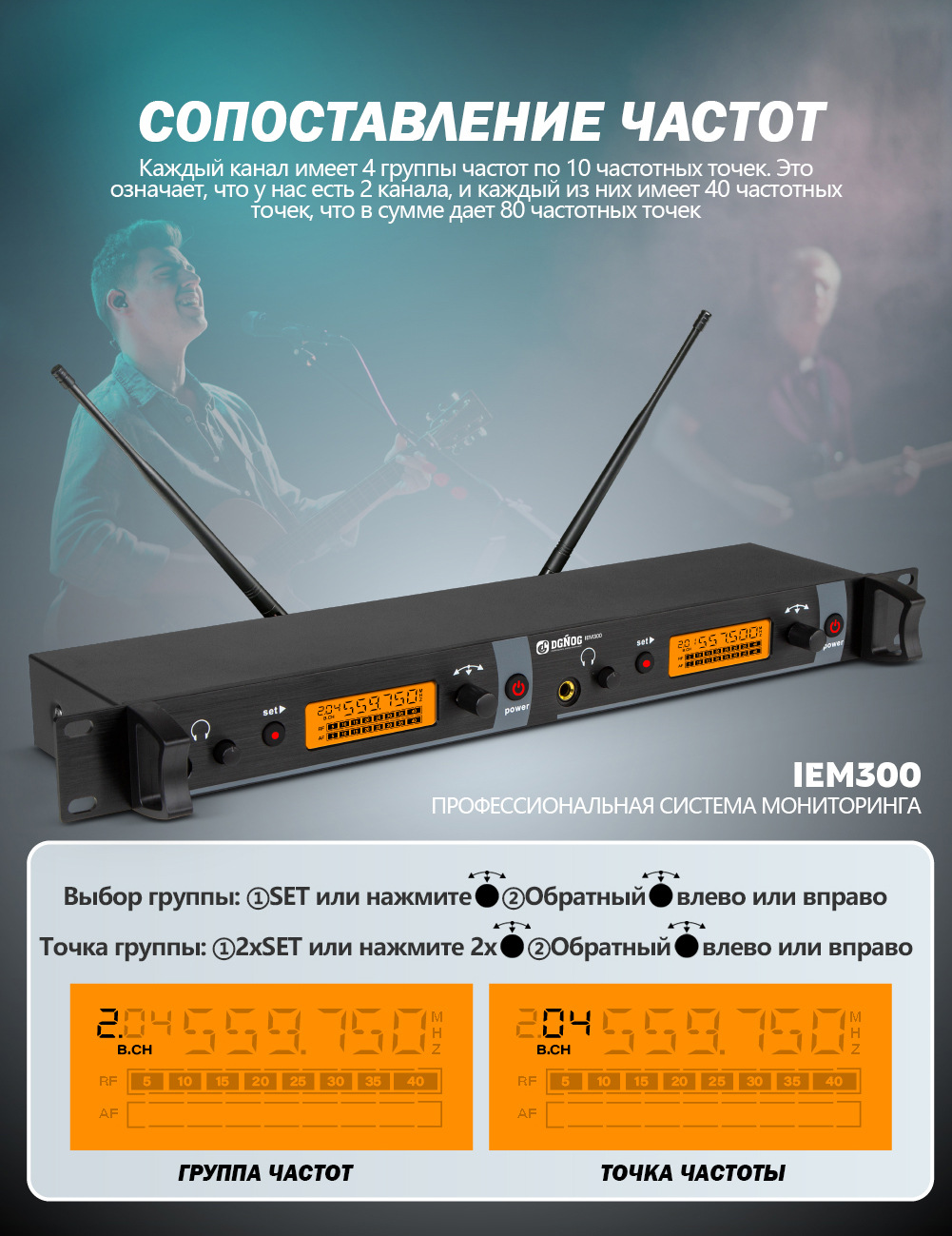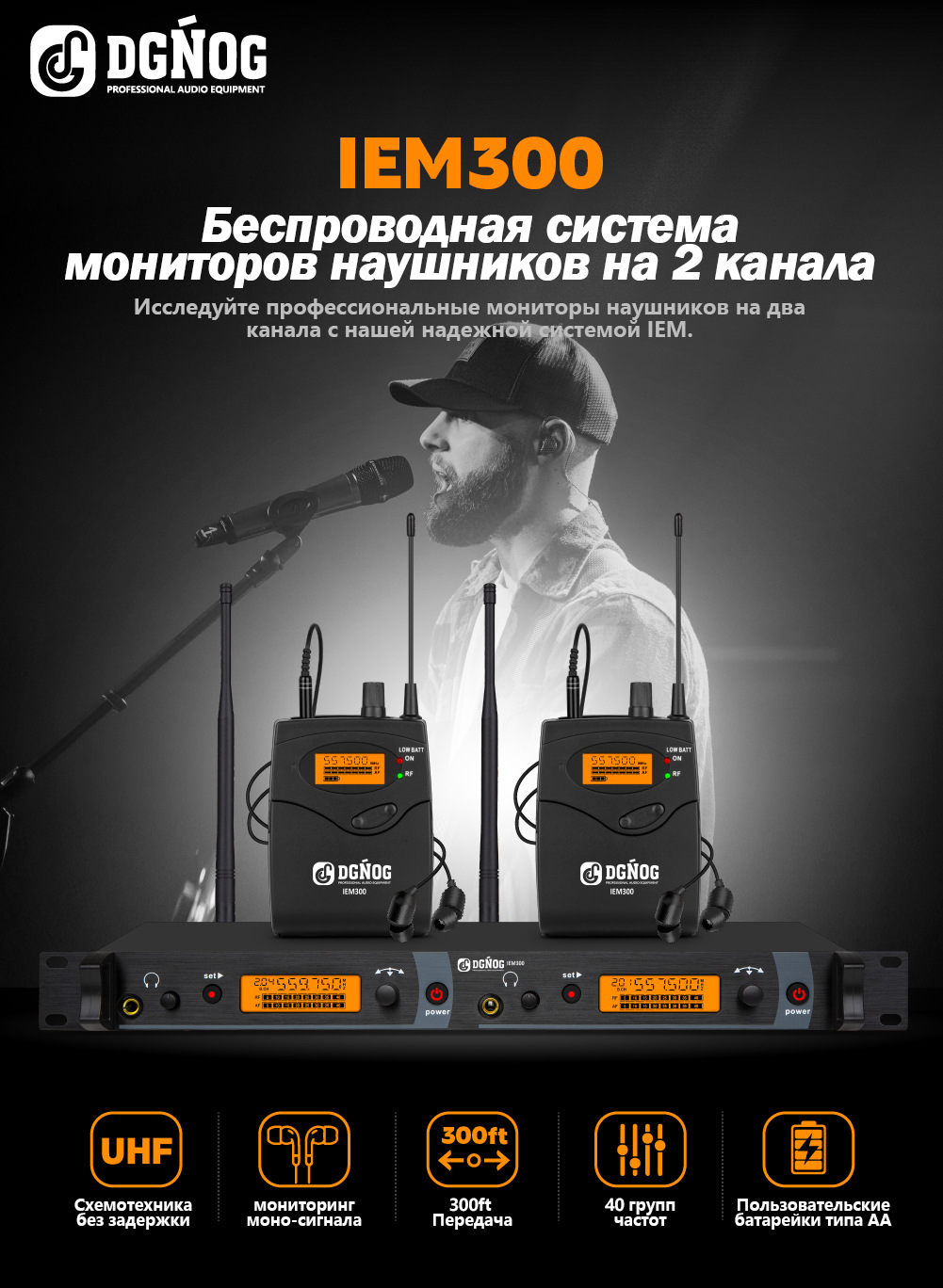 IEM300 двухканальная профессиональная беспроводная сценическая группа возвращается к исполнению системы мониторинга в ухе DGNOG
