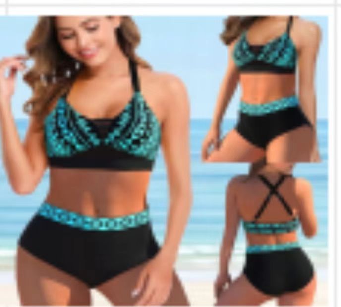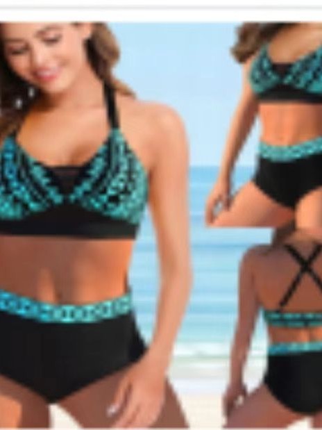 2025 Европа и США трансграничная внешняя торговля Тенденция Амазонка с печатным шеей Сексуальное бикини шнуровка с горячими источниками