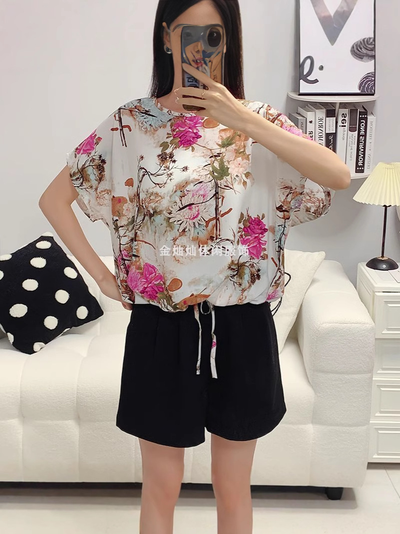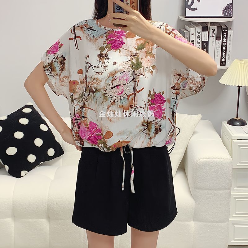 Футболка из искусственного хлопка с рукавами летучей мыши большой размер свободный топ