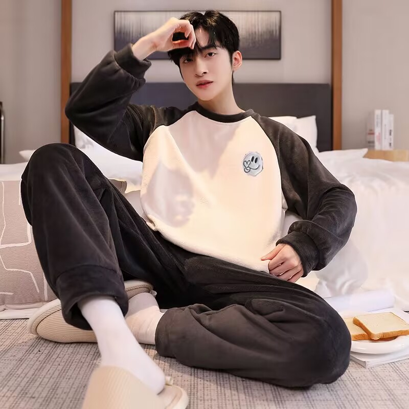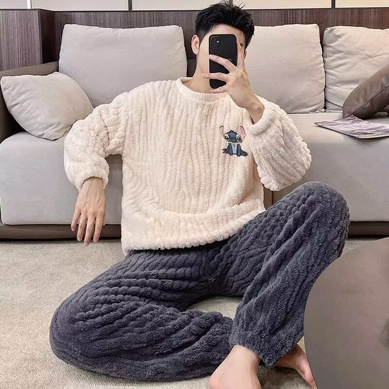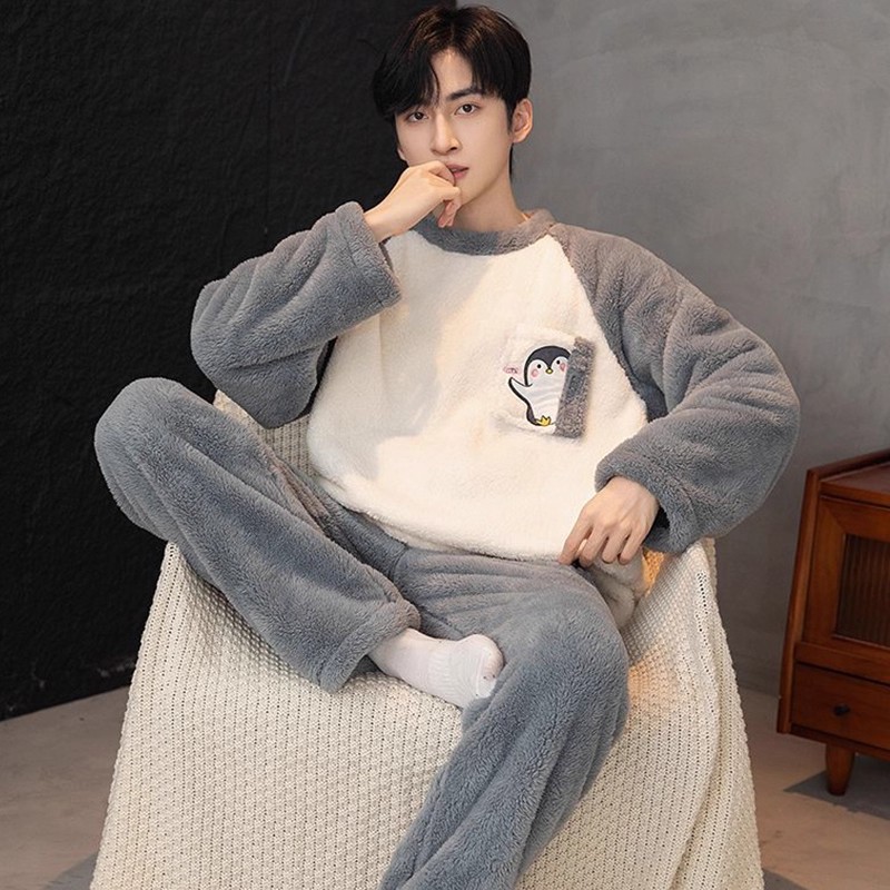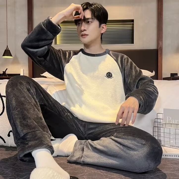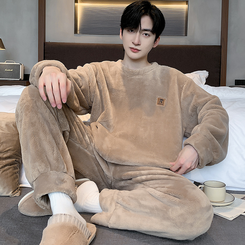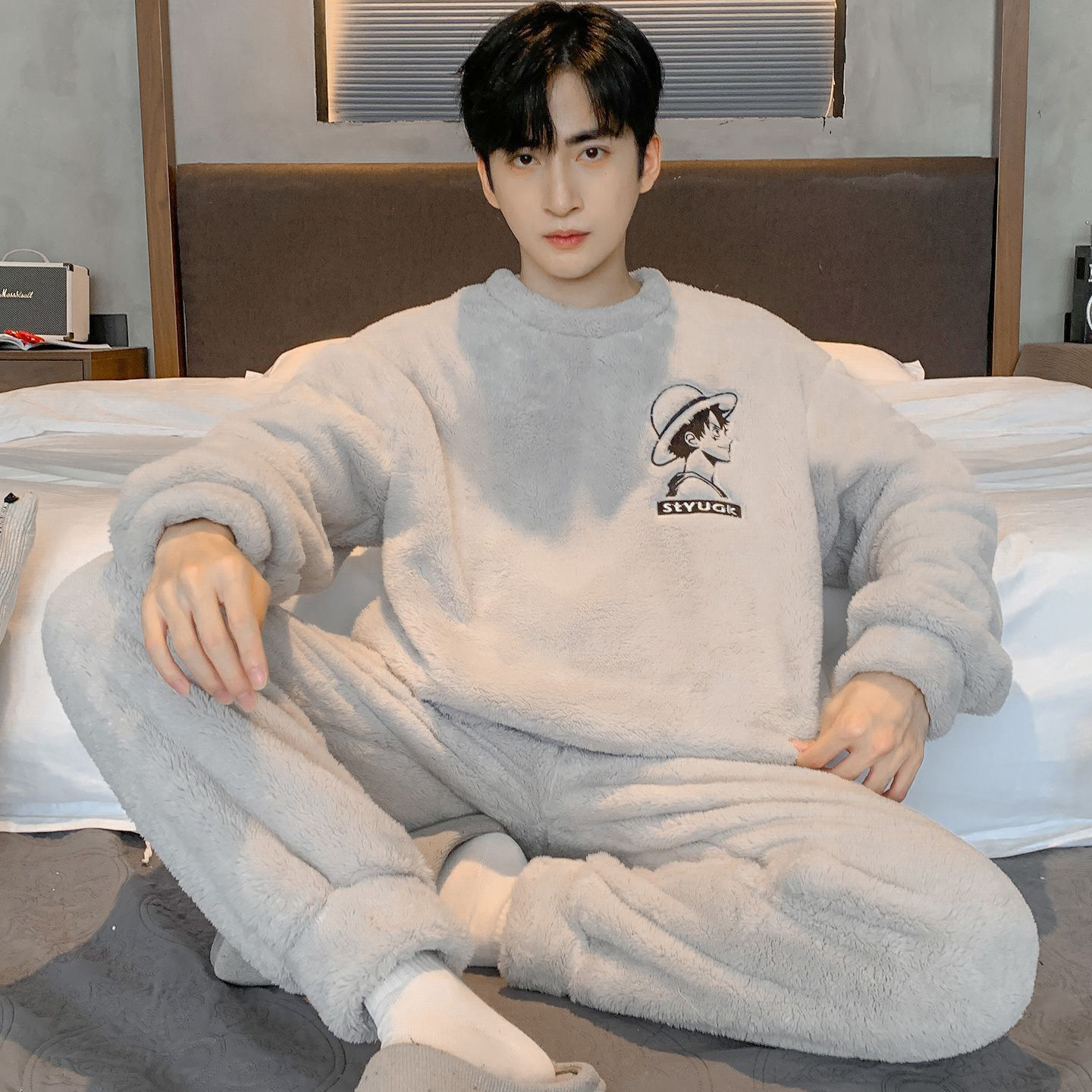 90kg Пижамы больших размеров для мужчин на осень и зиму, утолщенные и с бархатной подкладкой, с длинными рукавами, теплый пуловер, домашняя одежда, комплект из двух предметов