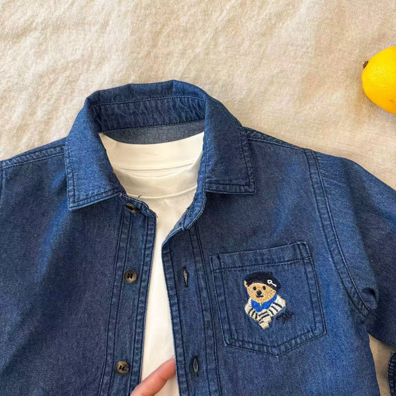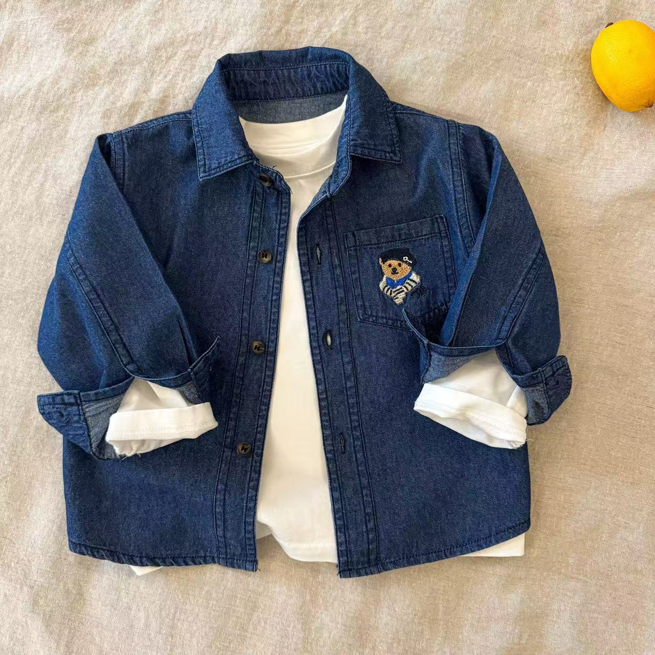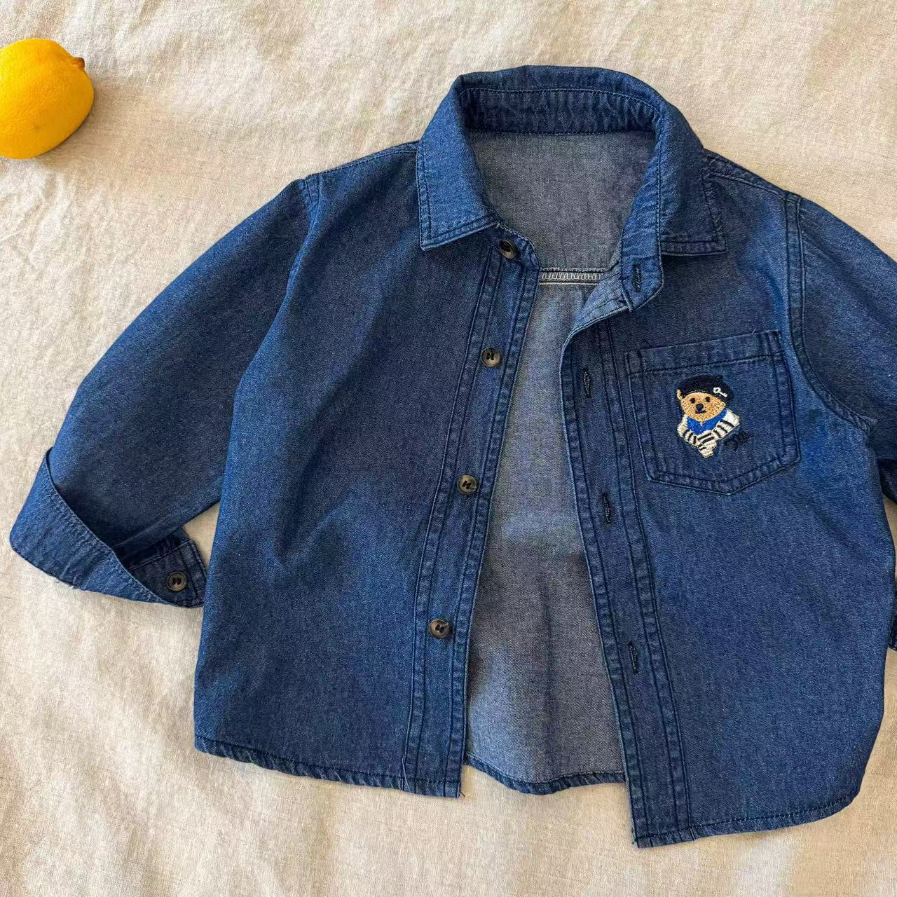 Детская джинсовая рубашка, осень 2023, новая детская одежда, повседневный топ с вышивкой в корейском стиле для мальчиков, модные и крутые топы для малышей