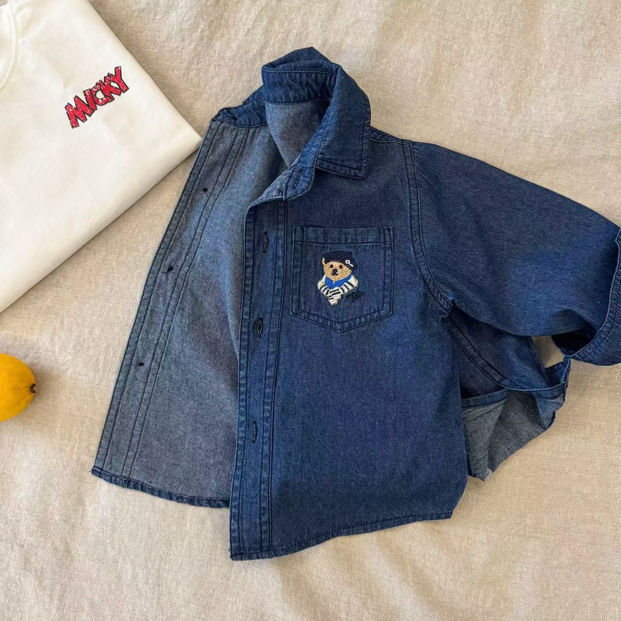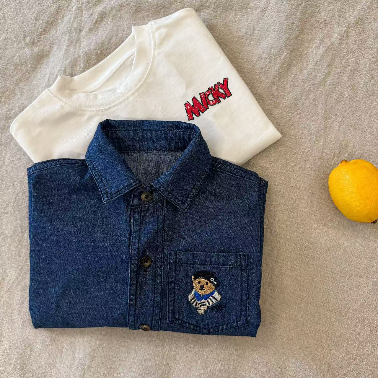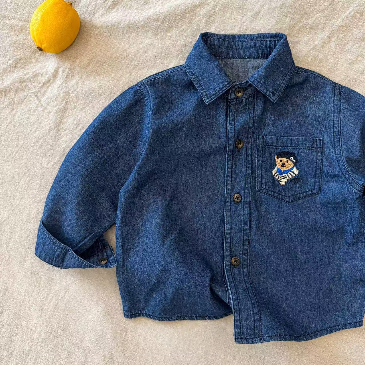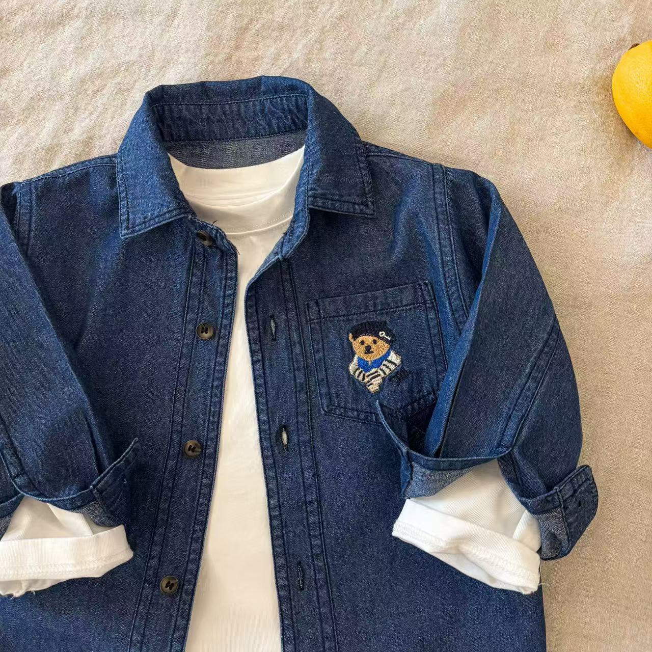 Детская джинсовая рубашка, осень 2023, новая детская одежда, повседневный топ с вышивкой в корейском стиле для мальчиков, модные и крутые топы для малышей