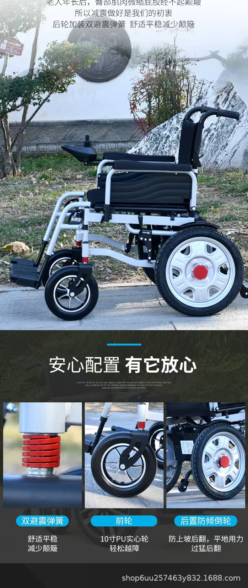 前轮10英寸铝合金轮毂实心胎 后轮16英寸碳钢轮毂充气胎