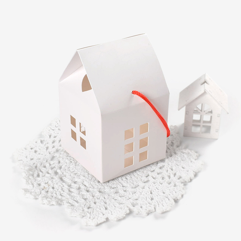 Сплошной цвет крафт-бумаги для ручного небольшого дома в форме подарочной коробки спот белый полый минималистский подарочная коробка